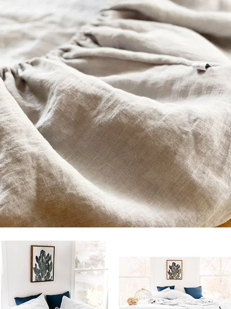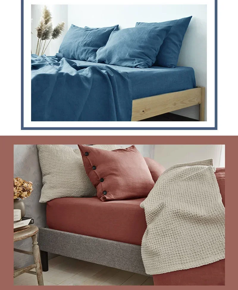 100% Linen Fitted Bed Sheet Mattress Cover Natural Washed French Flax Soft Natural Breathable Deep Pockets Farmhouse Bedding
