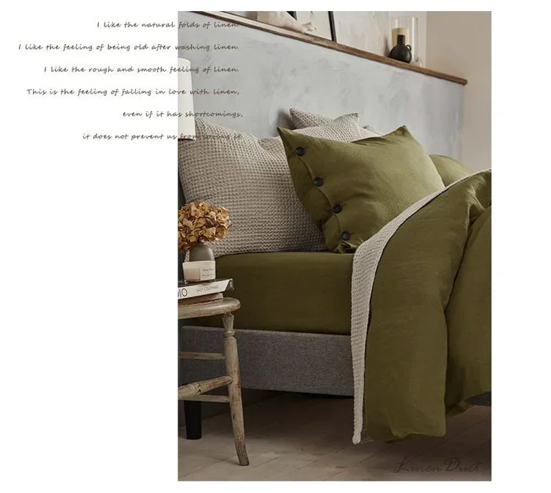 USE INSTRUCTION – Gentle cycle washing under 60℃. Do not use detergent that contains bleach or whitener. Tumble dry with medium heat. Warm ironing if needed. Do not dry clean. Wash with similar colors. Linen fabric will becomes softer after every wash.