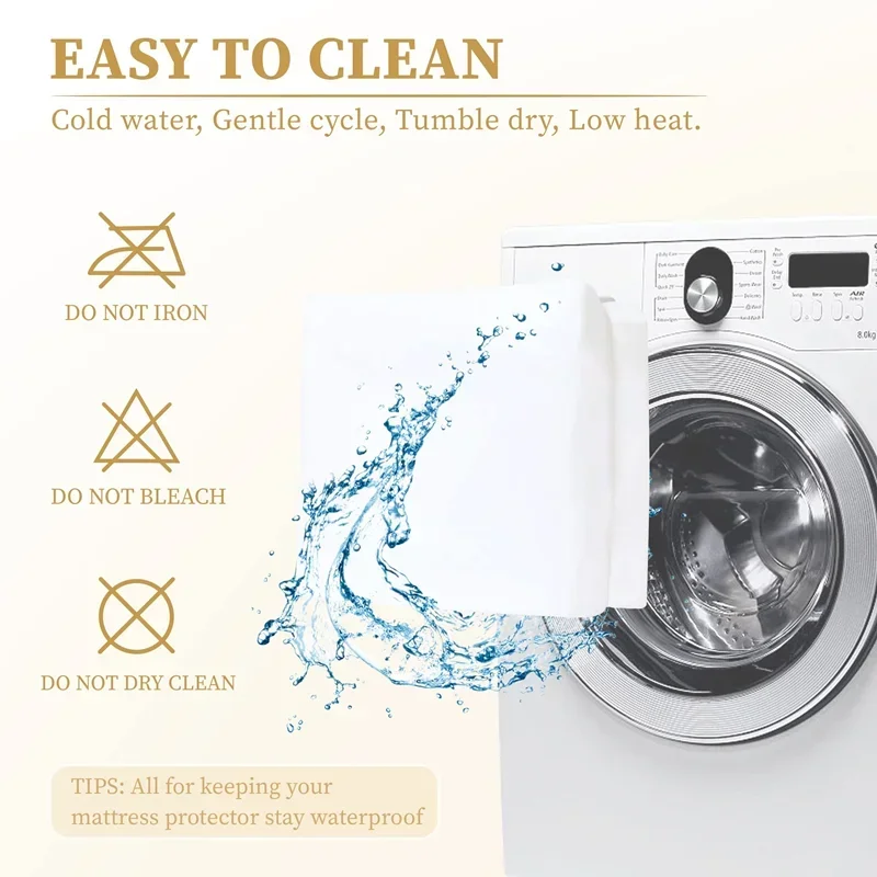 Machine-wash the mattress protector with your sheets using normal household detergents that do not contain bleach. It is best to wash with water below 30 degrees, don’t soak and mix with dark fabric.