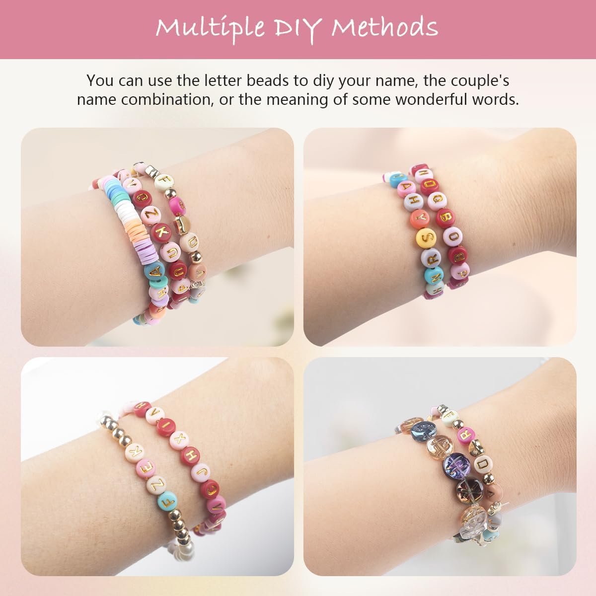 High Quality Material: Bracelet set bead made of high quality acrylic material, bead color mixed color, printed with gold-plated letters, each bead color bright, chic fashion, not easy to fade, suitable for a variety of jewelry design, can meet your different creative requirements