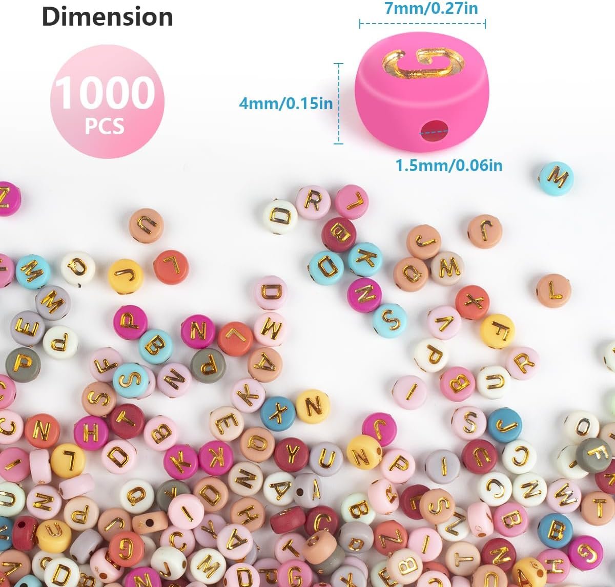 Ideal Gift:With 26 letter styles from A to Z and a set of 1000, this set of letter beads provides enough material for your creation, and you are free to combine them with your favorite words, names, abbreviations or phrases and get the perfect DIY experience. You can then give the personalized artwork as an exquisite gift to your friends or family to show your love and care.