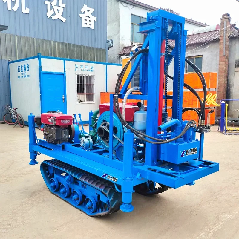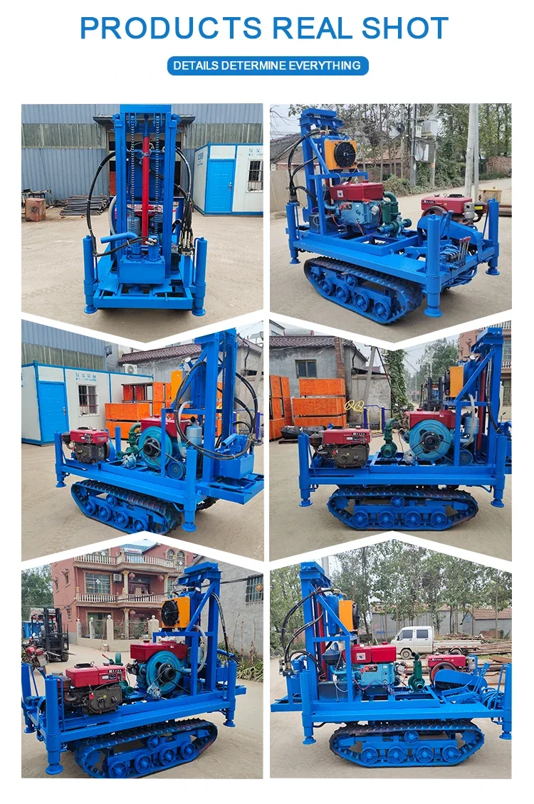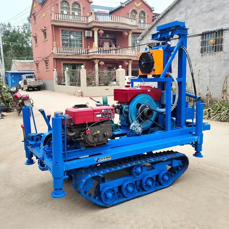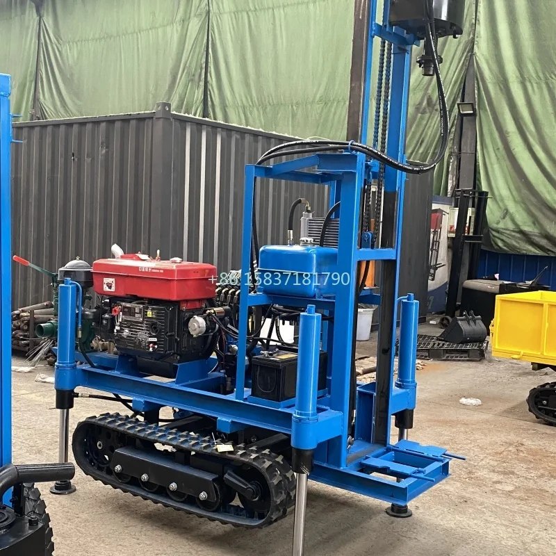 This crawler water well drilling machine is especially suitable for geothermal drilling, farm irrigation , house yard, gardens and water well drilling, drilling diameter is consist of 50-300mm, and drilling depth is 80m to 120m.