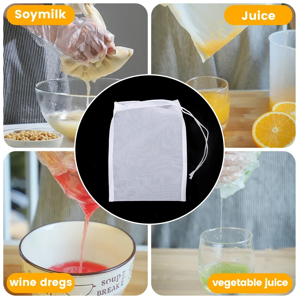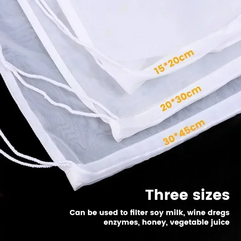 100Mesh Nylon Milk Filter Bags Reusable Soy Yogurt Tea Beer Coffee Oil Food Filter Net Drawstring Kitchen Strainer Bag Colander