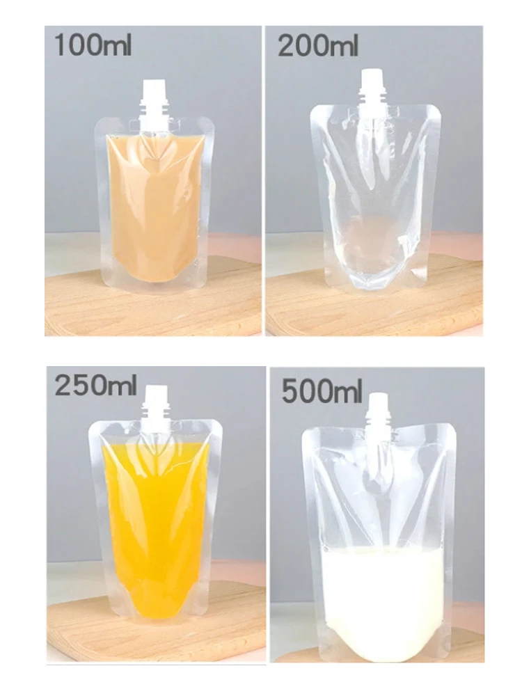 15 reviews for 100ml-500ml Travel Drink Spout Pouches Transparent Plastic Bags Sealed Juice Storage Beverage Ice Cold Drink Pouch Portable