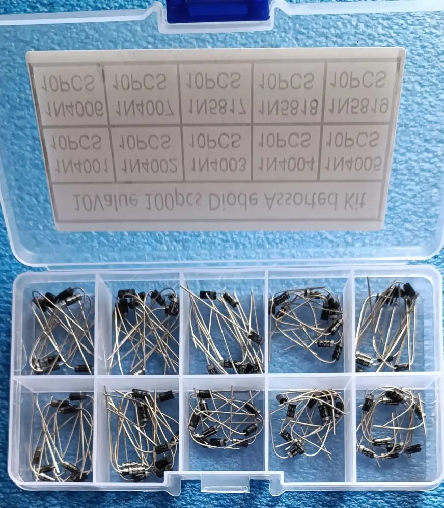 100Pcs 10 Values Rectifier Diode Assorted Kit 1N4001 1N4002 1N4003 1N4004 1N4005 1N4006 1N4007 1N5817 1N5818 1N5819 with Box