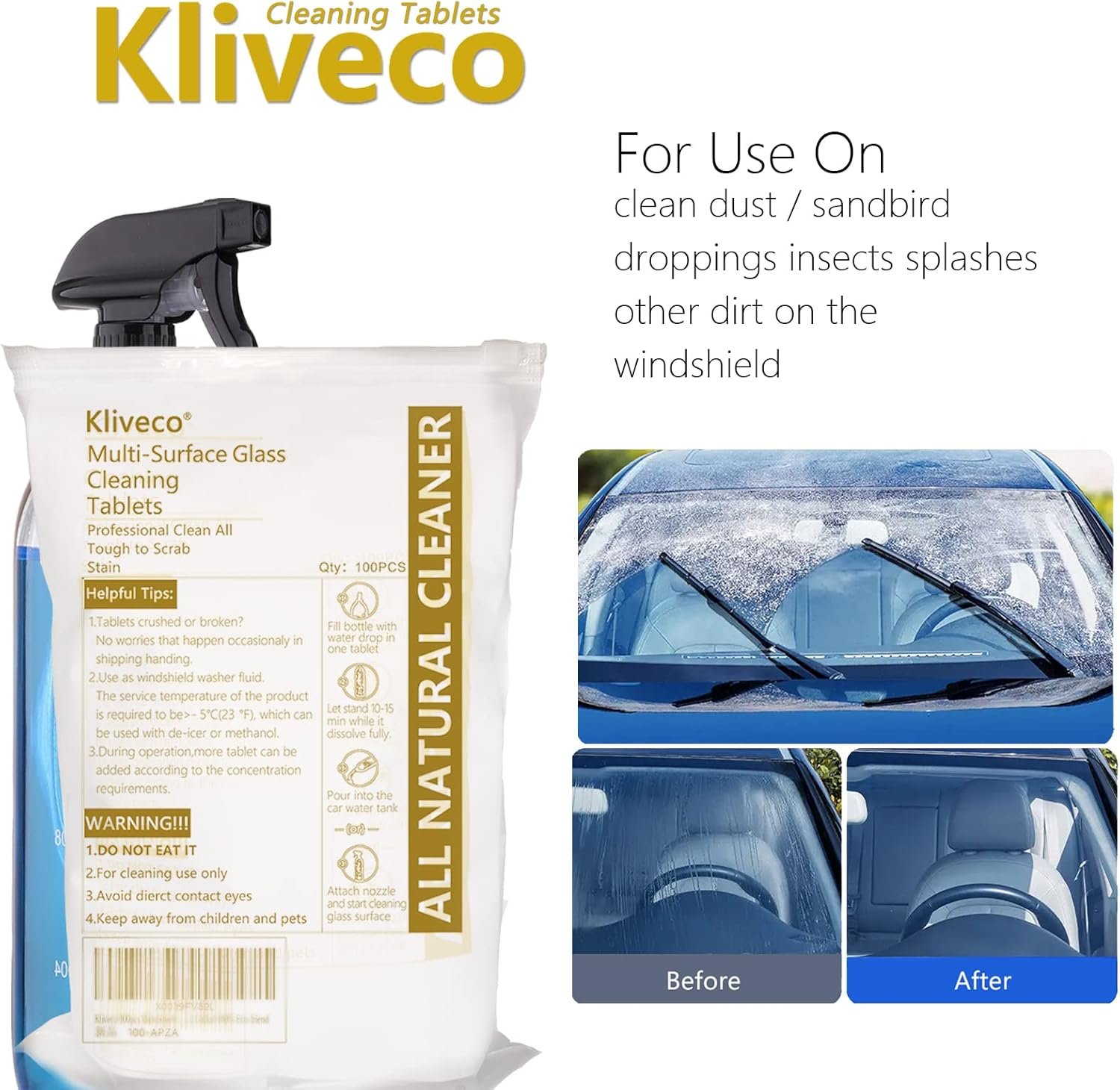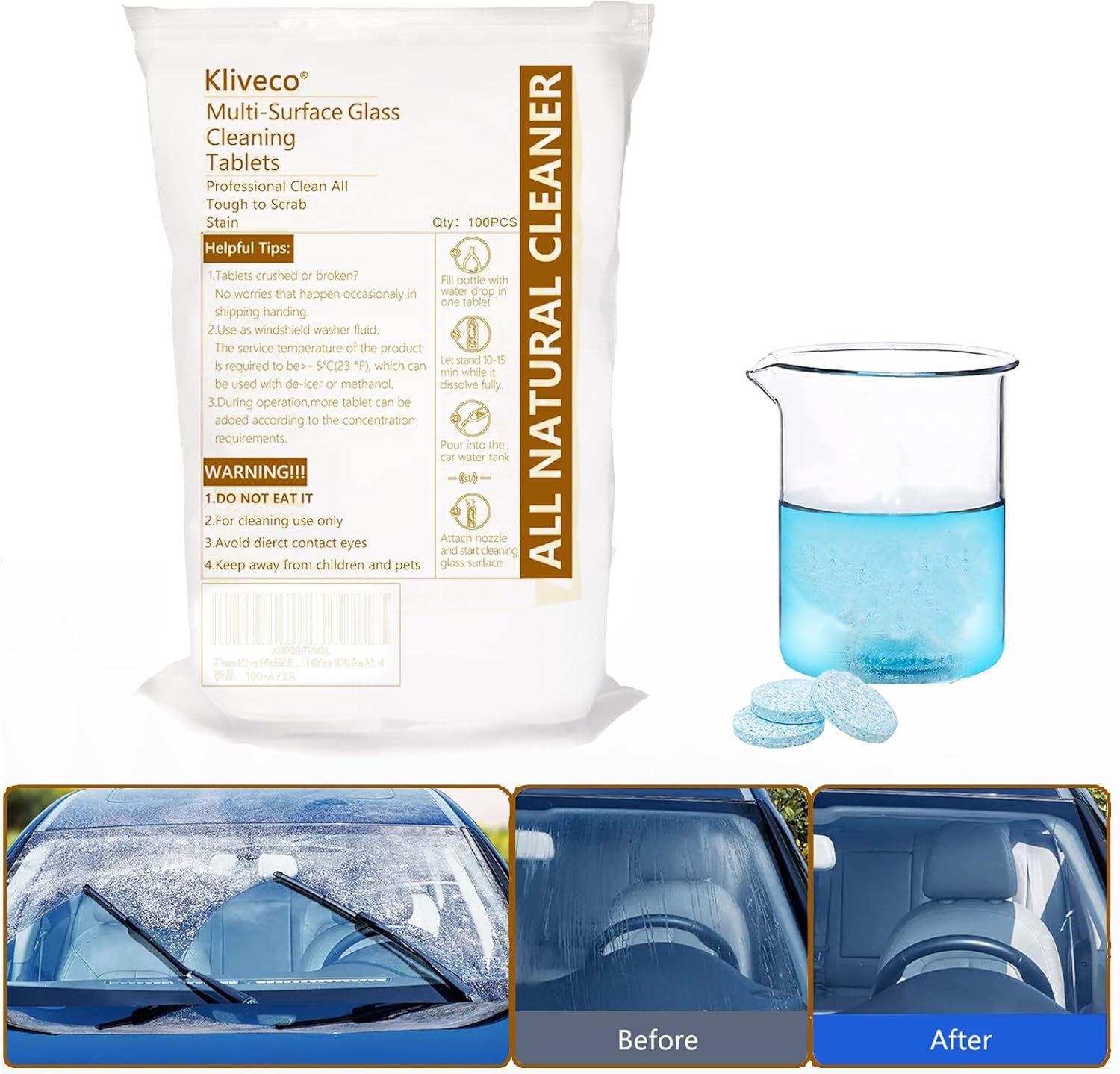 Windshield Washer:​​1 concentrated cleaning tablet equals ​1.05 gallons of glass cleaning fluid, delivering powerful stain and dust removal for spotless windshields. Ensures safe driving with crystal-clear visibility in rain, snow, or mud.