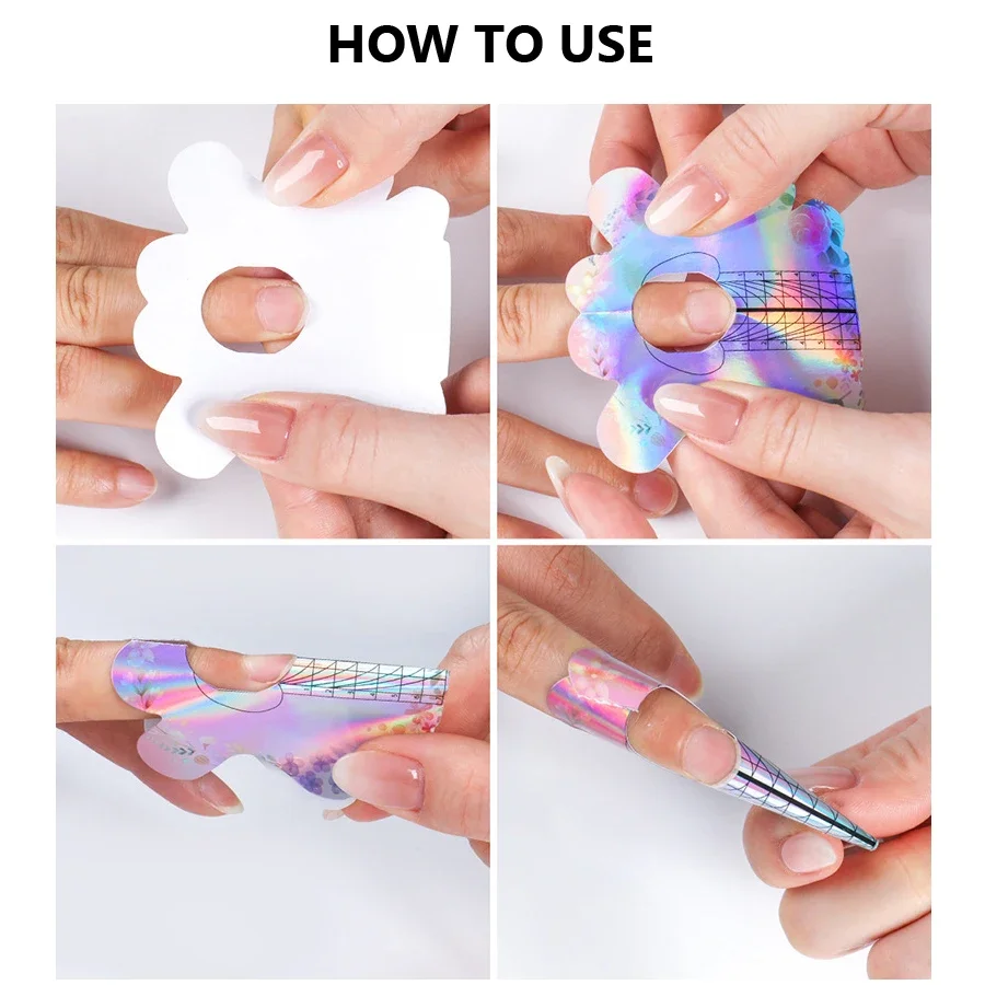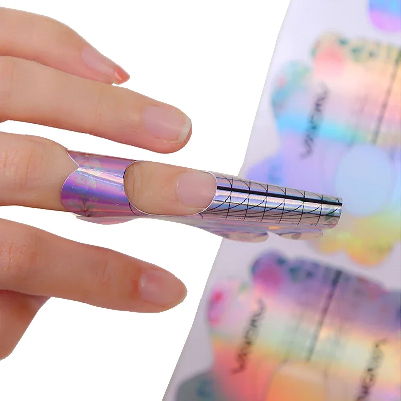 100Pcs Nail Forms For French Nails Tips Extension, UV Gel Building Self Adhesive Paper Molds Stencil