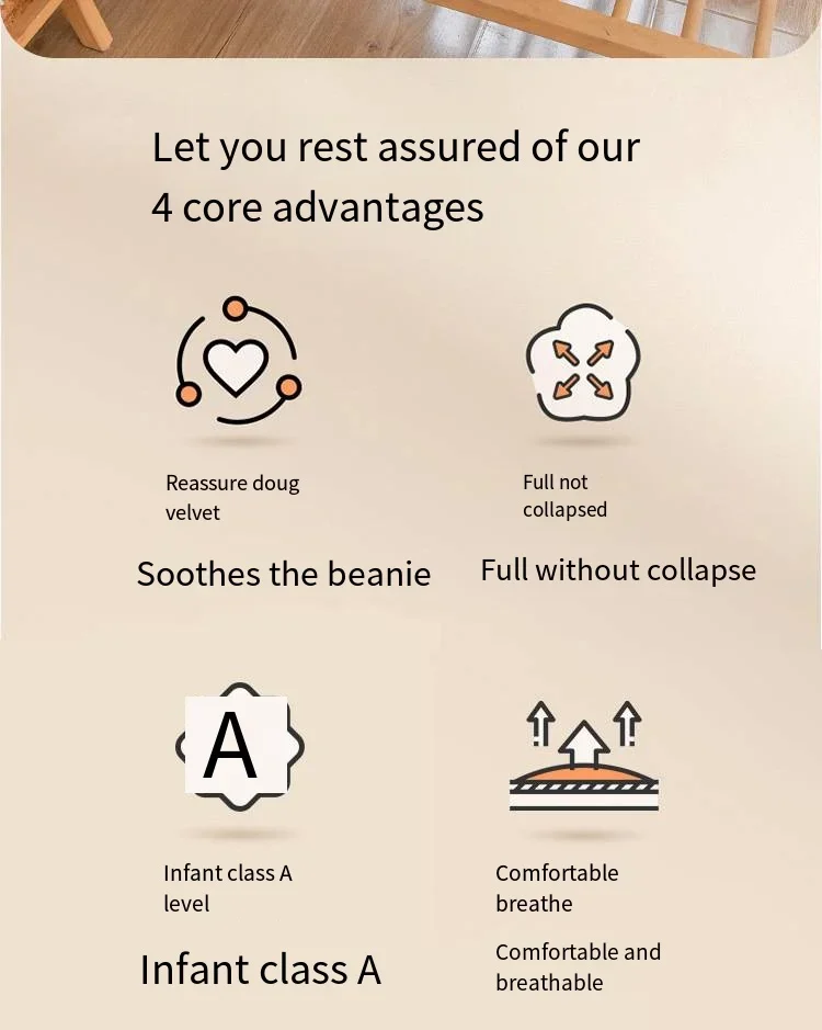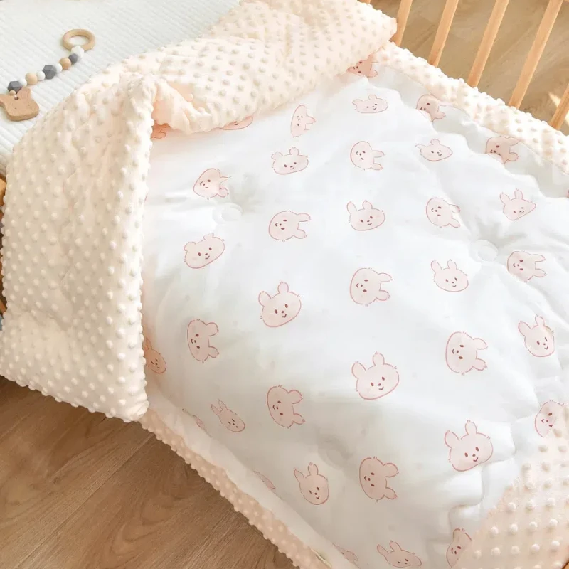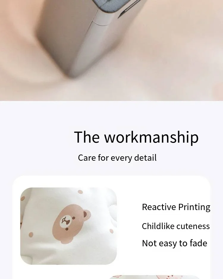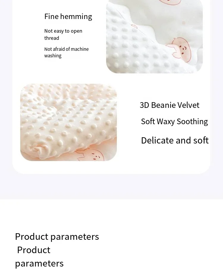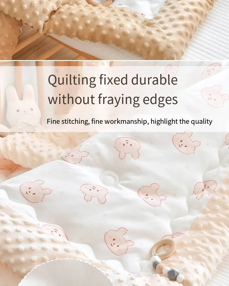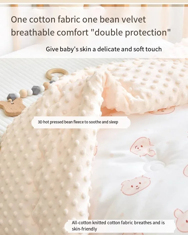 Class A standard non fluorescent body care for delicate skin One side is made of all cotton fabric, while the other side is made of bean down, which is breathable and comforting. “Dual protection” Give baby skin a delicate and soft touch