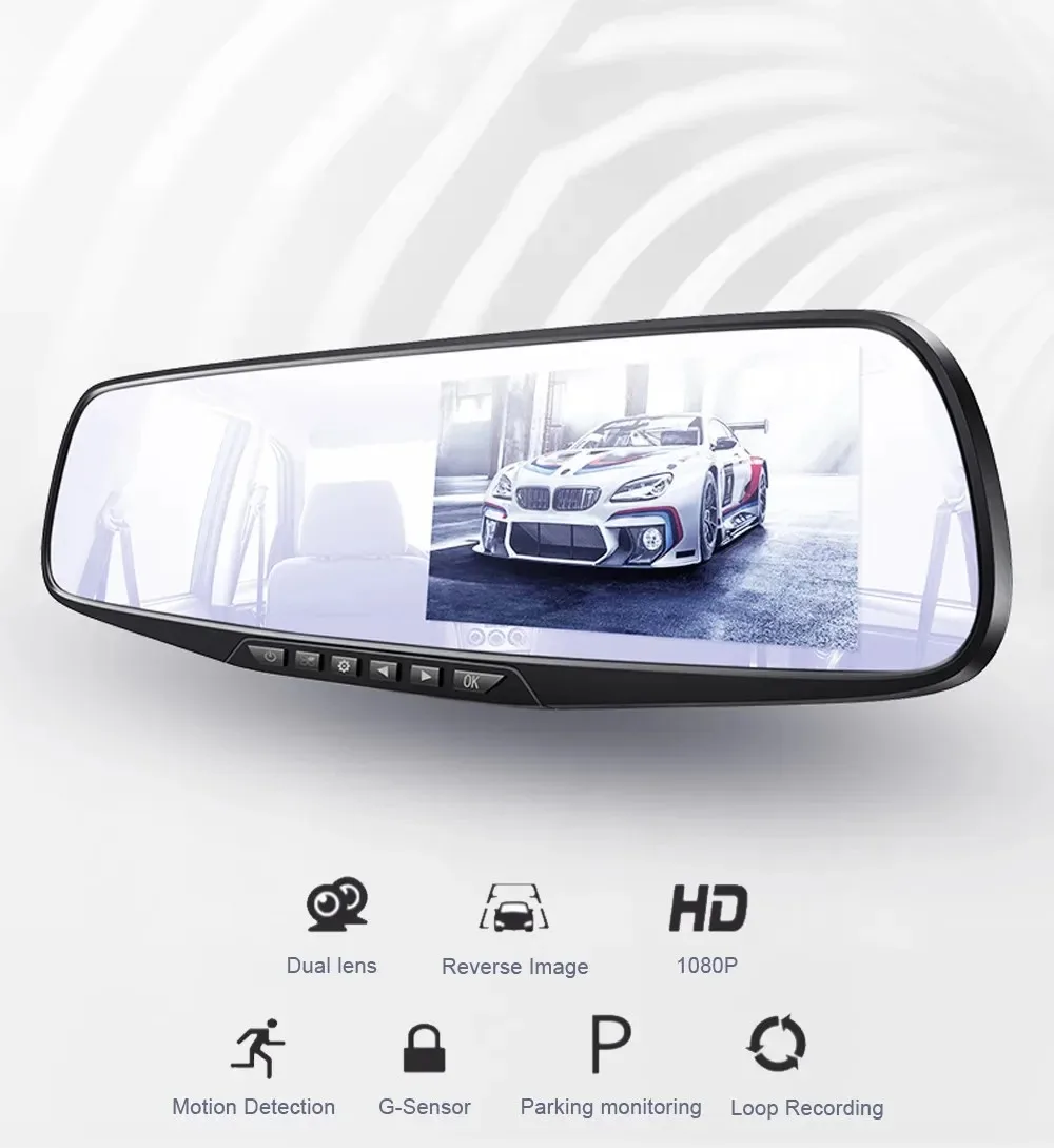 3 reviews for 1080P Driving Recorder 4.3Inch Car DVR Rearview Mirror Dual Lens Car Recorder IPS Front and Rear Camera Registrar Black Box New