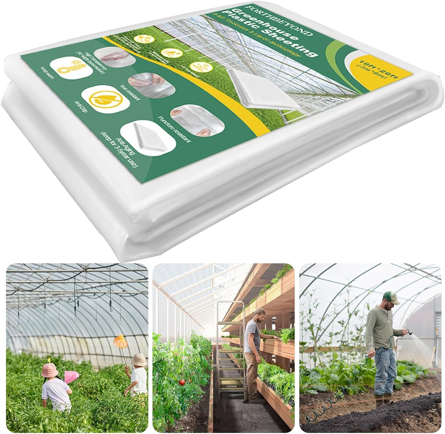FORTHBEYOND greenhouse cover plastic sheeting is an ideal solution for building your own greenhouse or protecting your plants from extremely harsh weather conditions.