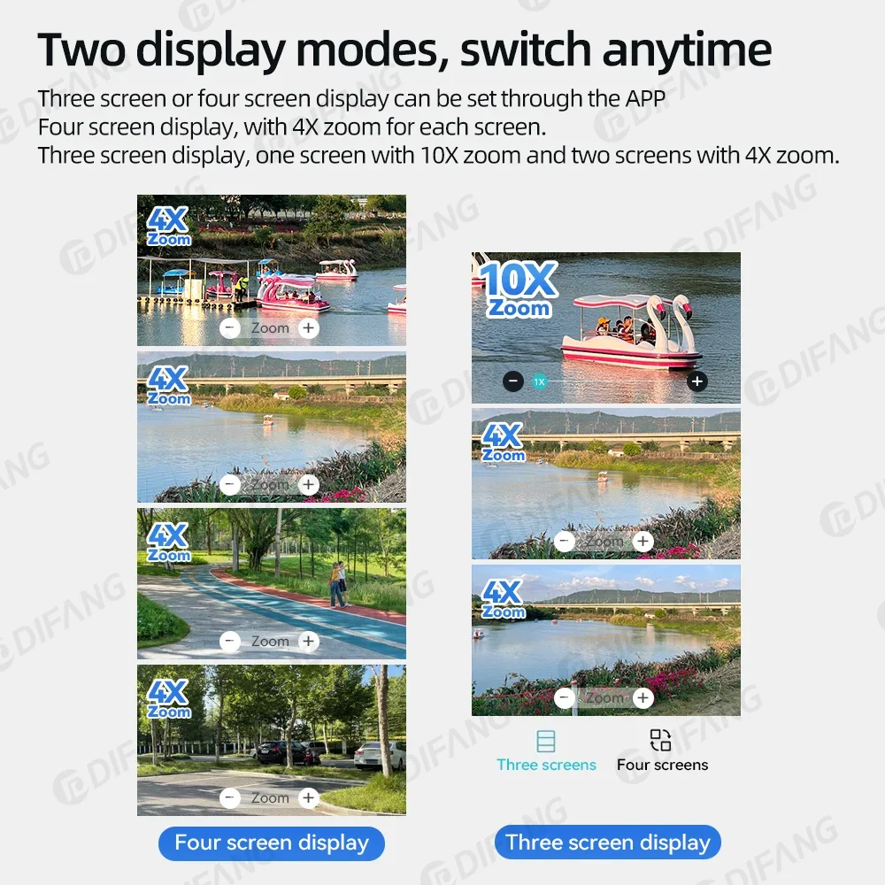 -8K cameras, three screen view+ support 10X zoom.