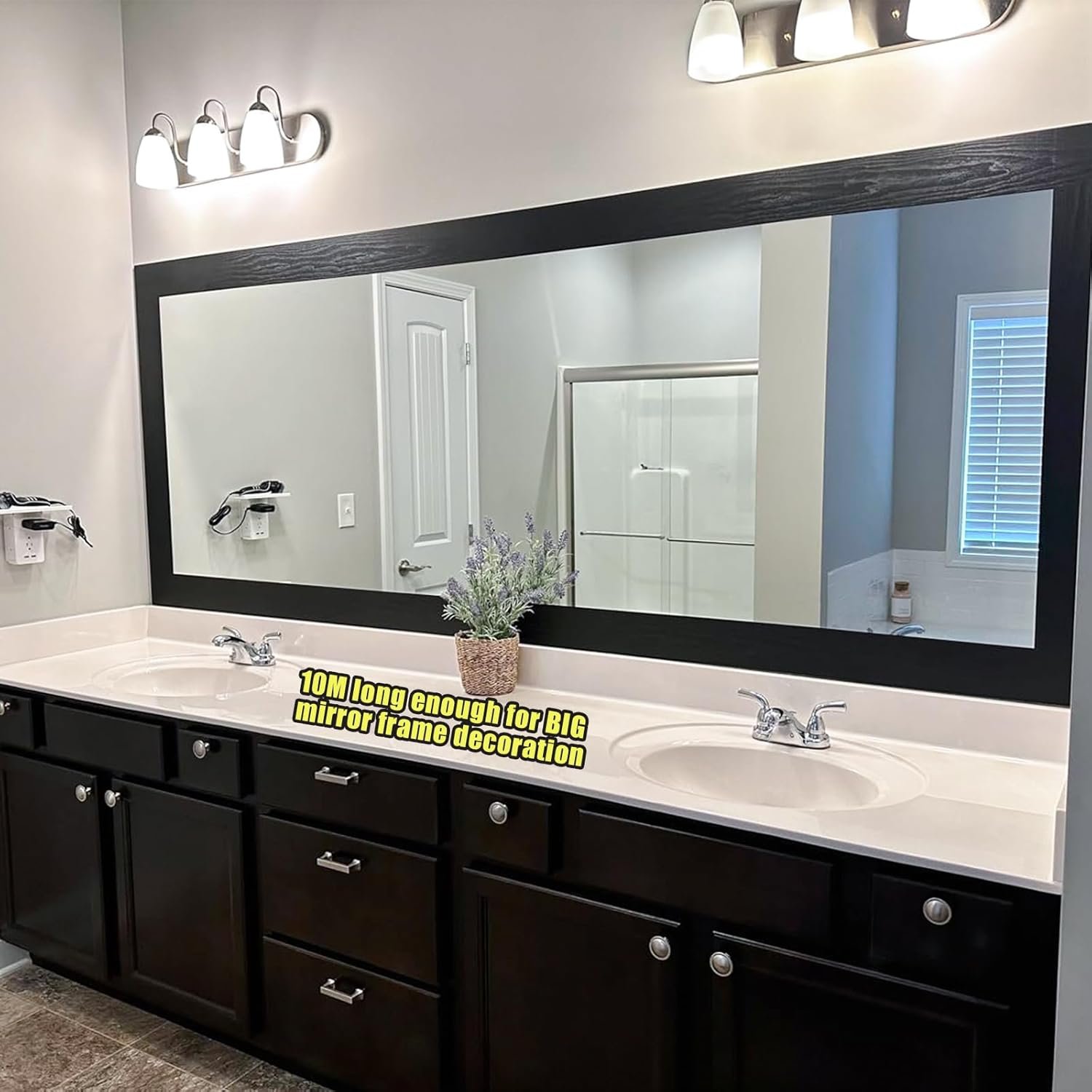 Customers find the wall border easy to apply, with one mentioning it takes just 35 minutes to install. The woodgrain pattern creates a realistic wooden frame appearance, and customers appreciate how it transforms mirrors and rooms. Moreover, the adhesive sticks well to flat surfaces, and customers consider it a cost-effective way to upgrade their bathrooms. Additionally, the product receives positive feedback for its durability, with customers noting it holds up well over time.
