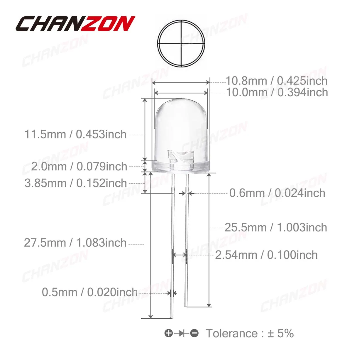 Polarity: Anode (Longer Part) | Cathode (Shorter Part)