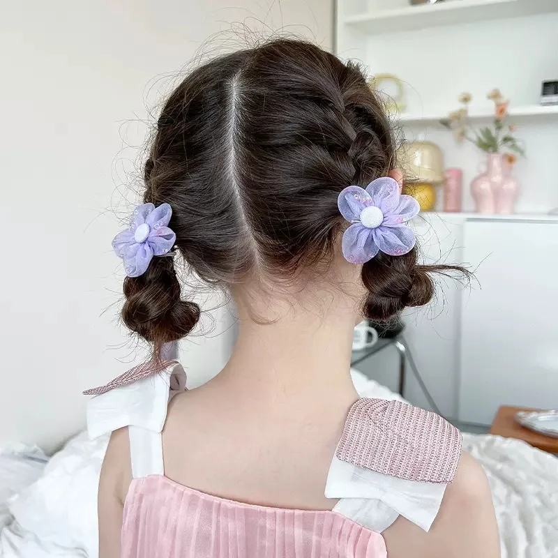 Children’s mesh flower scrunchie does not hurt hair ,princess headdress cute girl rubber band.
