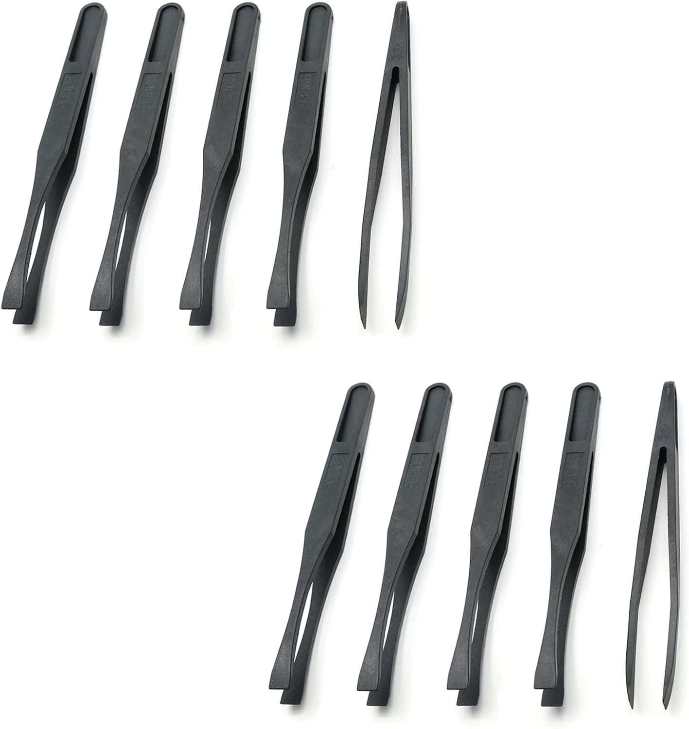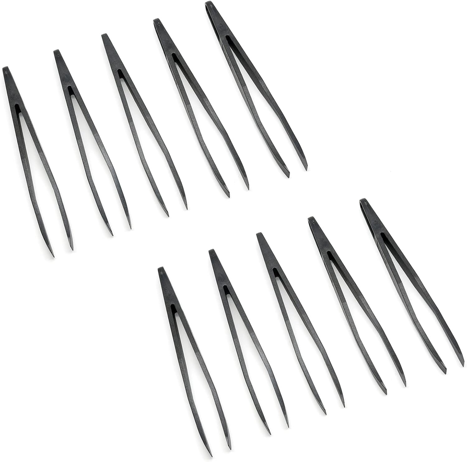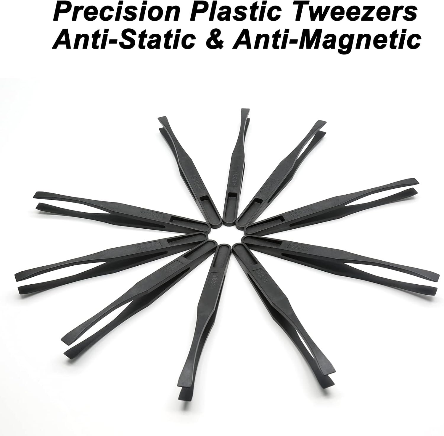 10Pcs Flat Tip Plastic Tweezers, Anti-Static & Anti-Magnetic Tweezers, Precision Tweezers Set for Crafts Electronics, DIY, Repair Tool (4.6 Inch, Black, 93308)