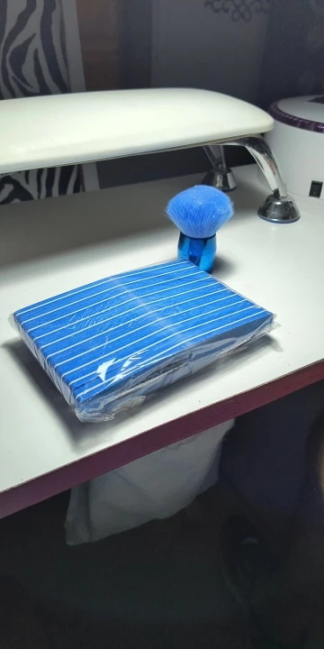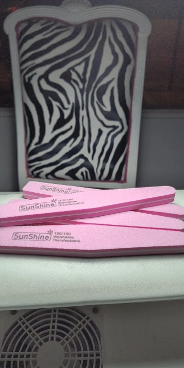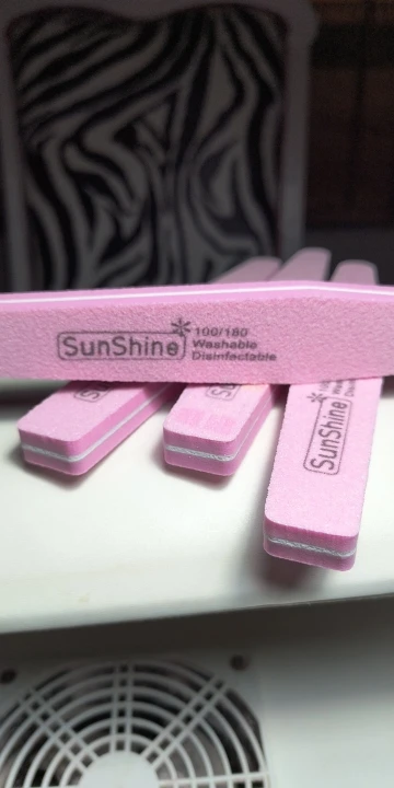 -Firmly Padded Nail Art File for taking down length, product refinement and surface smoothing.