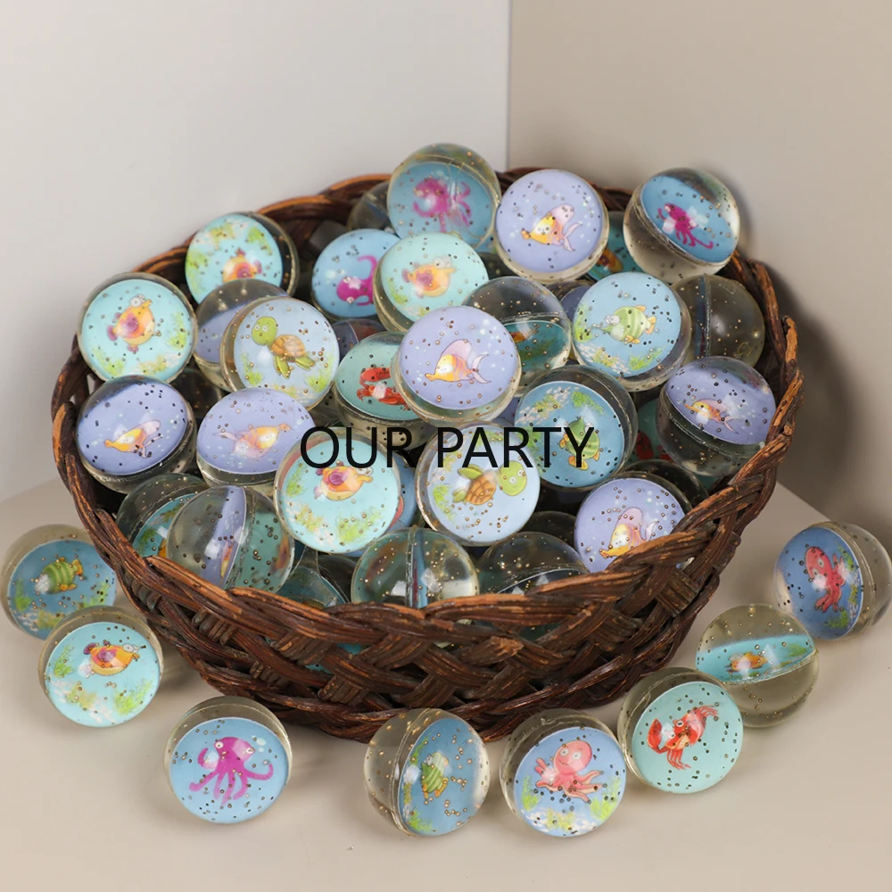 10Pcs Ocean Animal Theme Glitter Jumping Bouncy Balls Outdoor Toys for Kids Birthday Party Favors Baby Shower Pinata Fillers