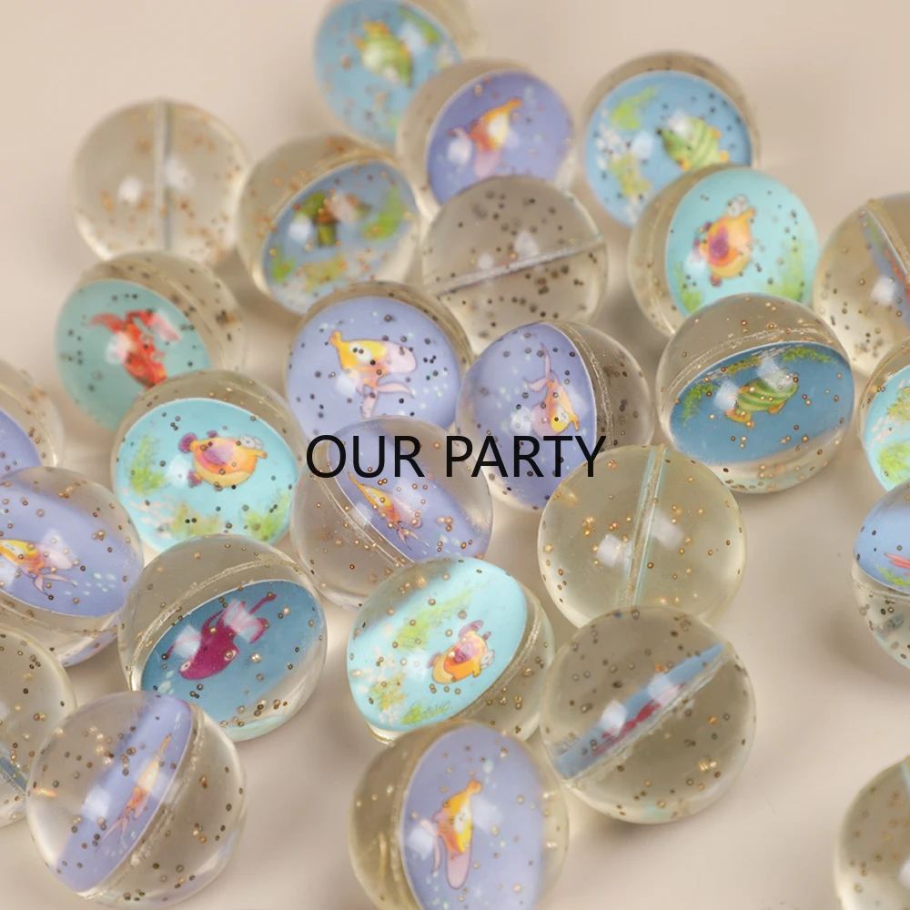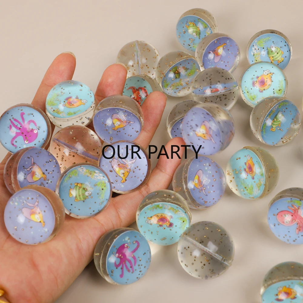 10Pcs Ocean Animal Theme Glitter Jumping Bouncy Balls Outdoor Toys for Kids Birthday Party Favors Baby Shower Pinata Fillers