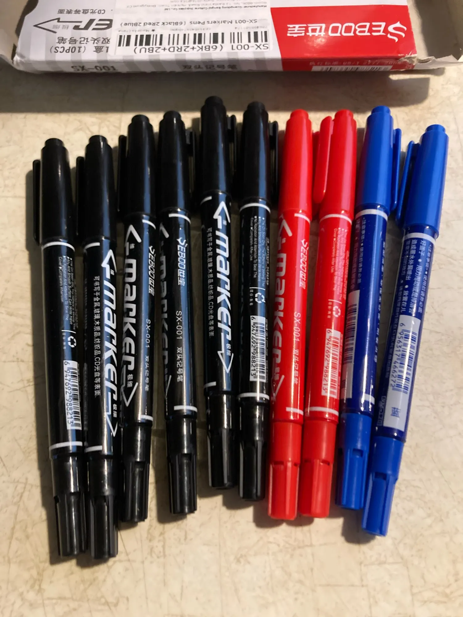 12 reviews for 10Pcs Twin Tip Permanent Art Markers Pens, Fine Point, Waterproof, Oily, Black,Red,Blue Ink, Painting, Office & School Supplies