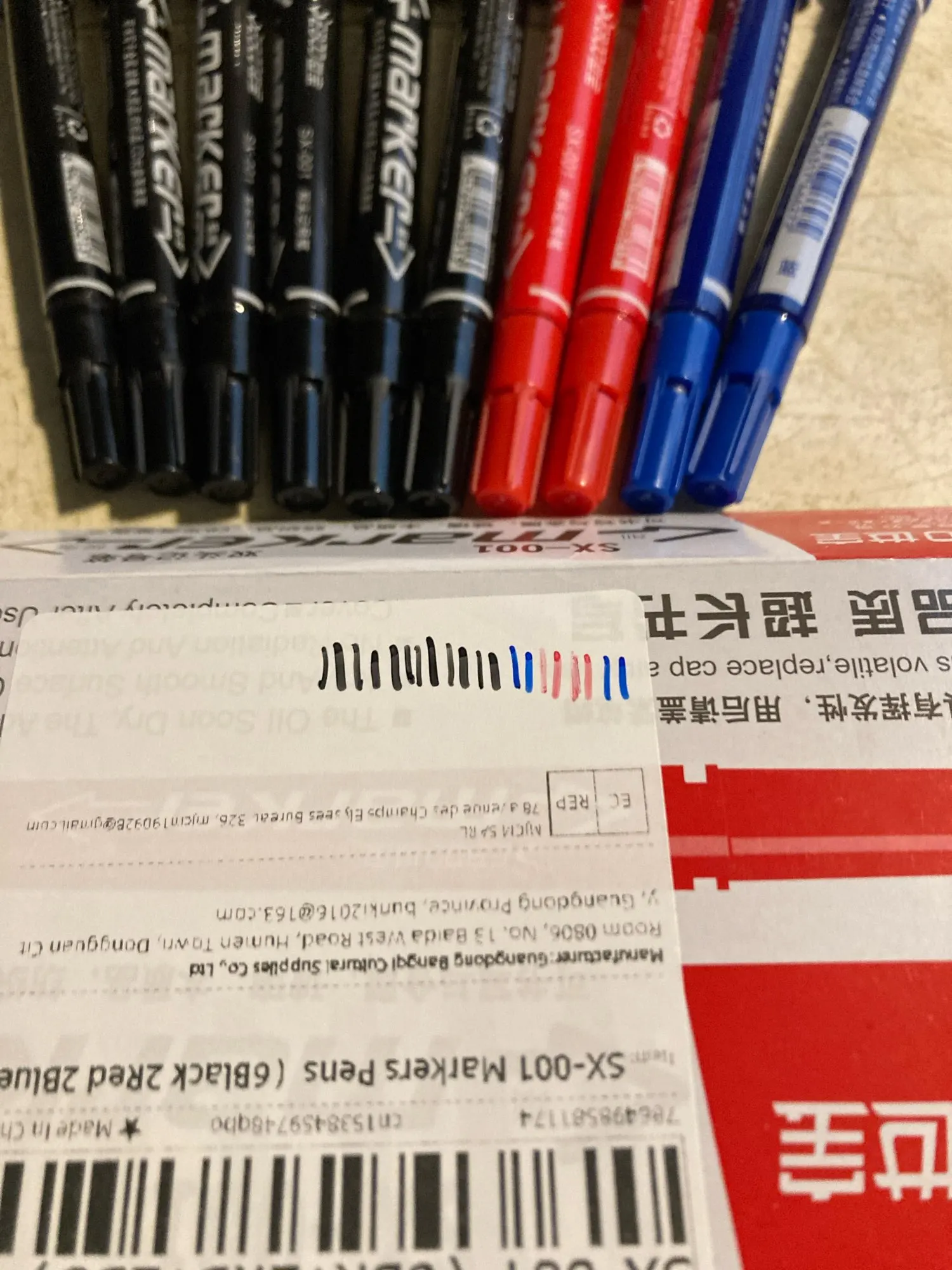 Good markers, great price for ten. I only wish that the red ones were not as faint as they ended up being. The colour saturation on the black and blue are much better. Fast shipping.