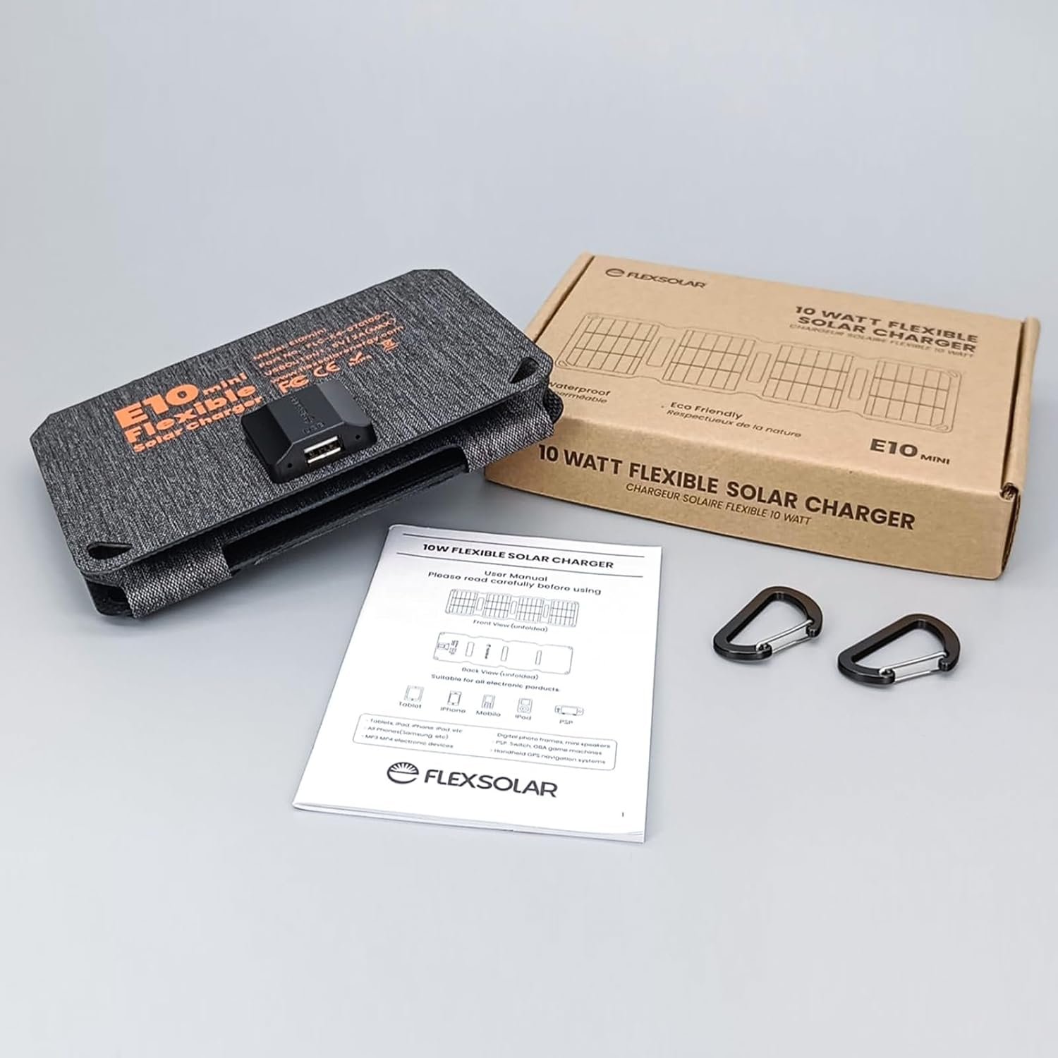 Model E10MINI Material Monocrystalline Weight 200G Folding Size 4.7 x 6.3 x 0.98 in Unfolding Size 19.4x 6.3x 0.5 in Ports USB A Operating Temperature 14 ℉-149℉