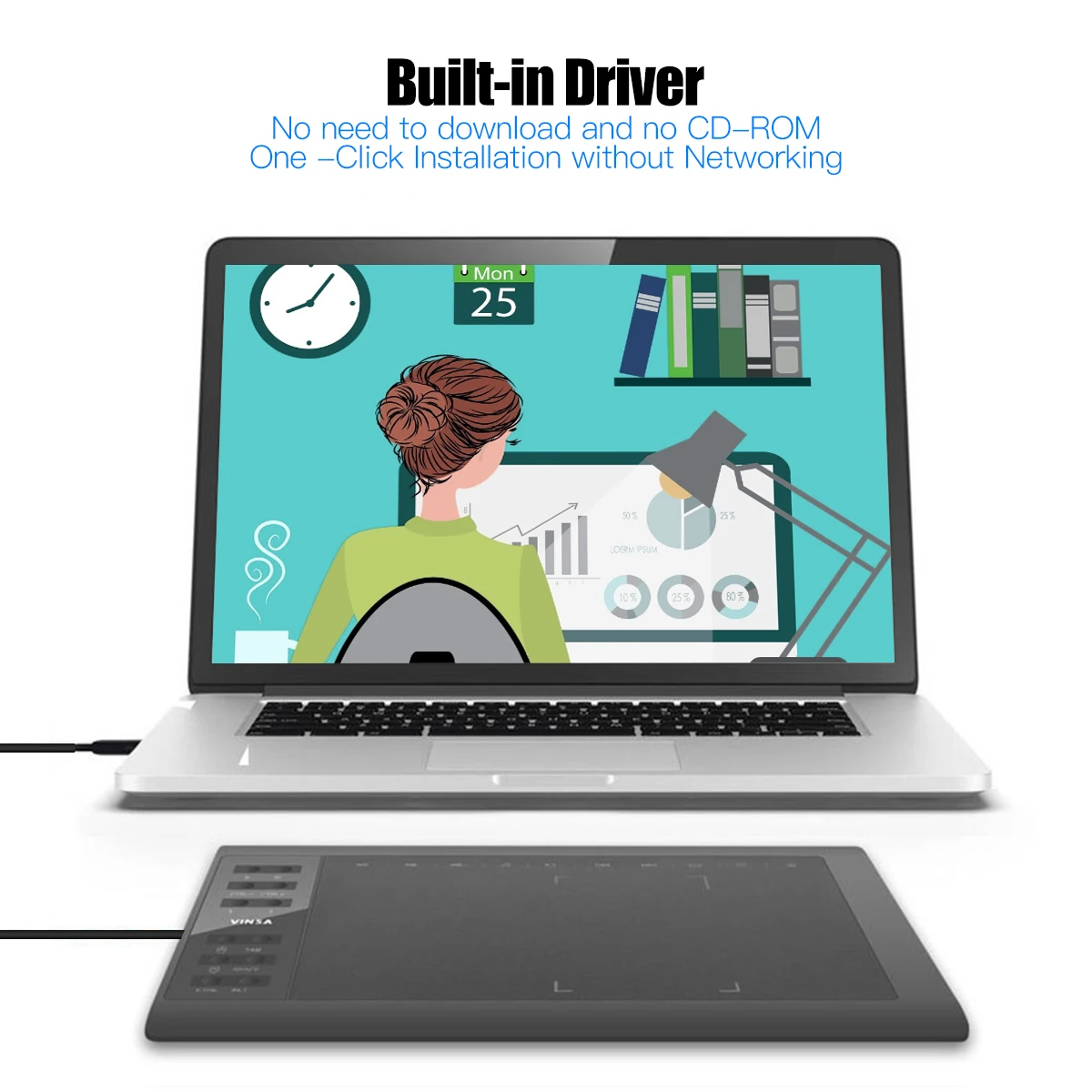 Professional Graphics Tablet: Graphics Drawing Tablet with 10×6 inch active area, provides you a sufficient creative area. 5080LPI resolution and 233PPS report rate, enabling the painting smooth and truly show you art works.