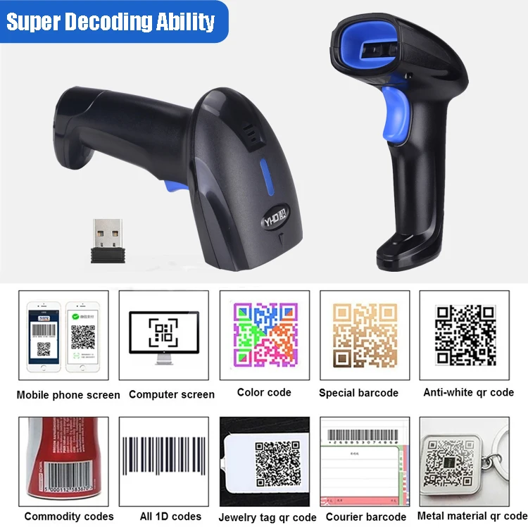 YHD-1100DW 2D 2.4G Wireless Barcode Scanner Handheld 1D 2D QR Bar Code Reader PDF417 for Logistic, Supermarket and Warehouses