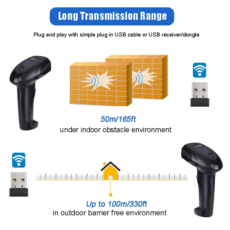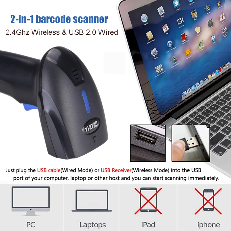 2D Wireless CMOS Barcode Scanner can connect with POS systems, laptops and PC computers.