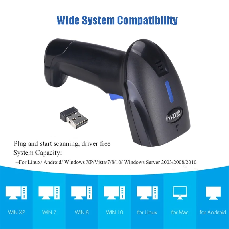 YHD-1100DW 2D 2.4G Wireless Barcode Scanner Handheld 1D 2D QR Bar Code Reader PDF417 for Logistic, Supermarket and Warehouses