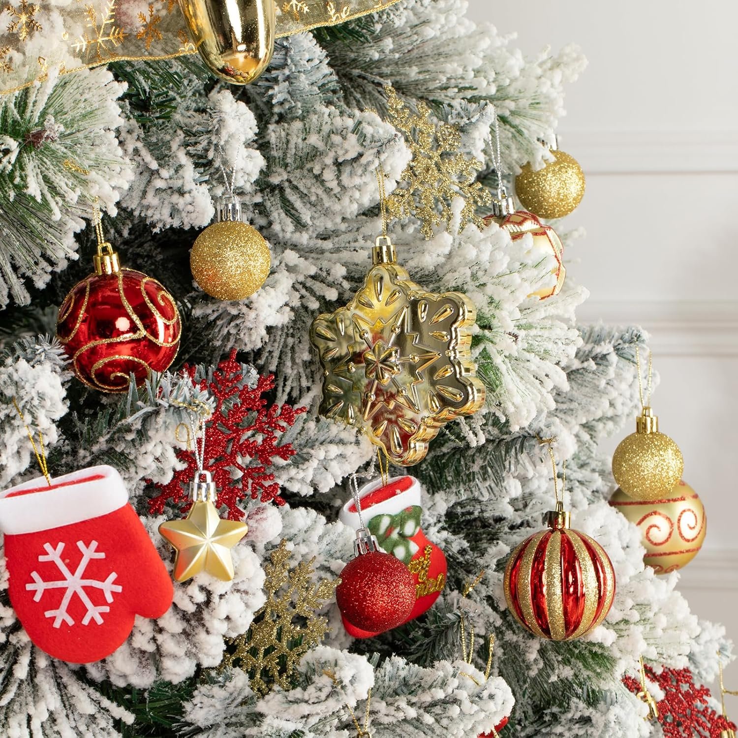 110Pcs Christmas Ball Ornaments Set, Assorted Red and Gold Christmas Ornaments for Xmas Tree, Shatterproof Plastic Baubles Hanging Decorations for Holiday/Party/Wedding