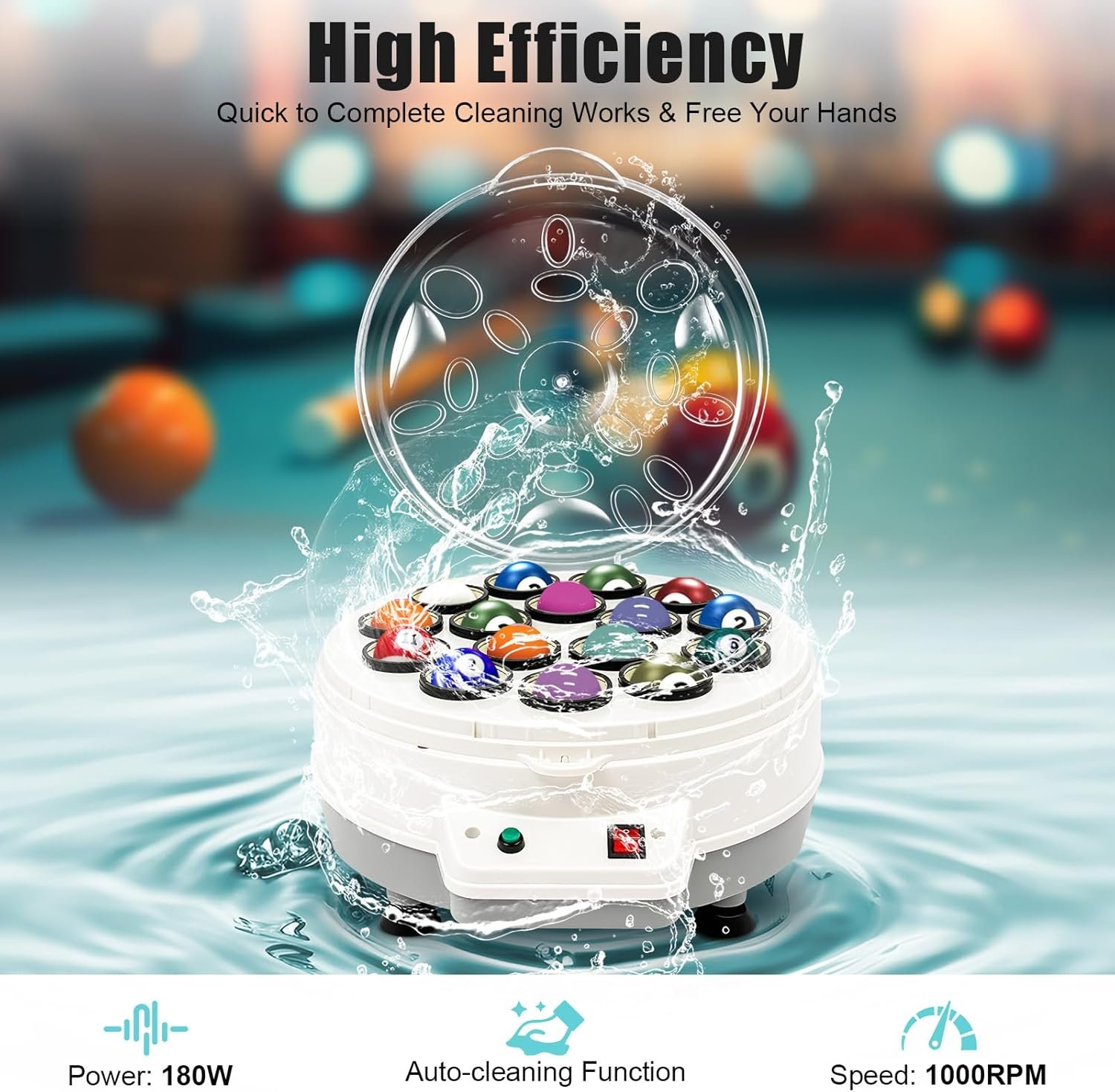 【High Efficiency】: The 180W copper wire motor with 1000 rpm and high-quality wool ring provides a good polishing effect and easily removes dirt from the billiard surface with low noise. In addition, the auto-cleaning function frees your hands.