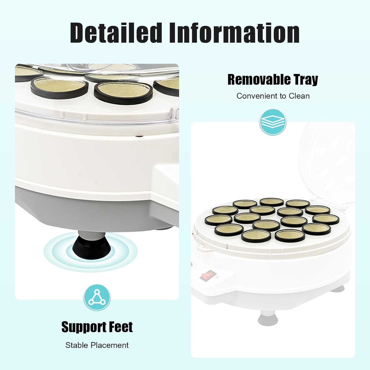 【Safety First】: The oval-shaped heat dissipation holes on the lid with the motor cooling system can dissipate heat in time and prolong the service life of the product. The two fuses can improve the safety of the billiard ball cleaner.