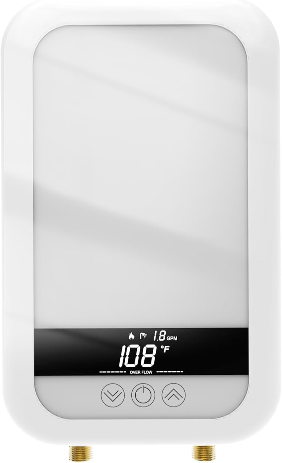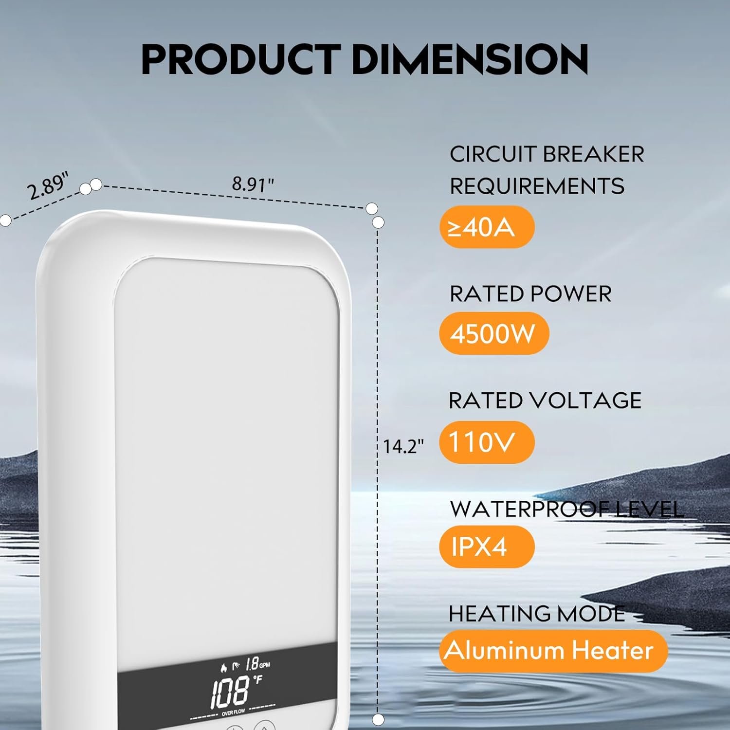 110V Tankless Electric Water Heater,4500W Under Sink On Demand Instant Hot Water Heater,LCD Touch Screen tankless Water Heater (4500 W, White)