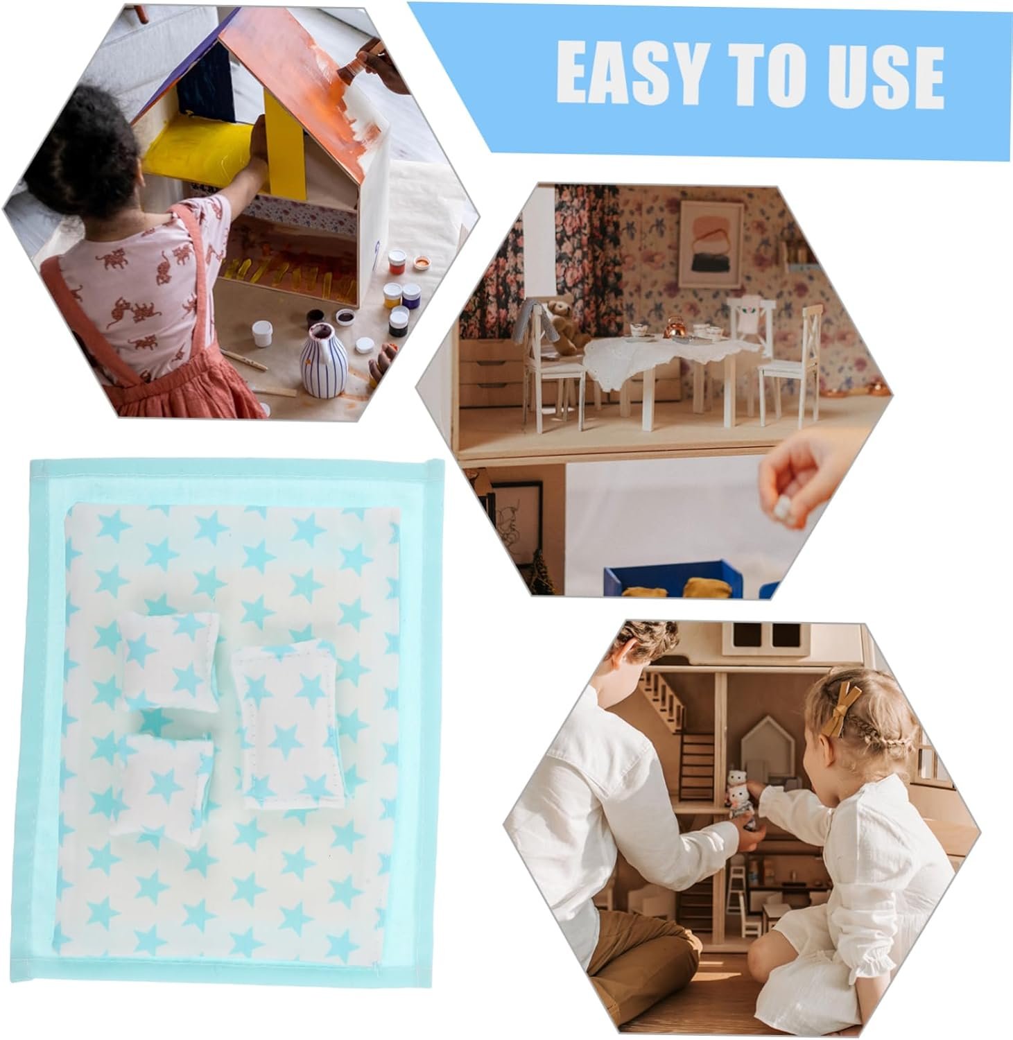 Effortless cleaning: easy to wash, this bedding set helps maintain a clean and tidy dollhouse environment, with pillow,small pillow cases