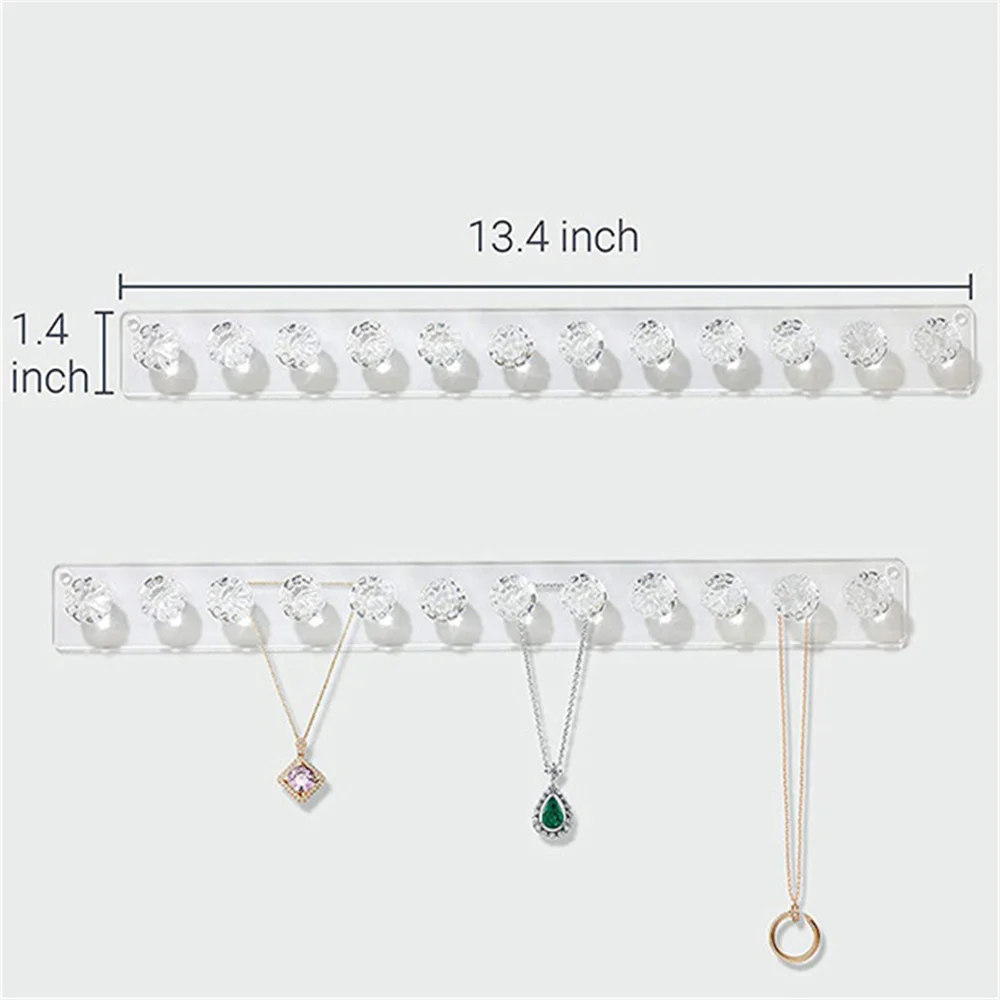 Ideal Size: The total length of each bracket is about 13.4 inches, the width is about 1.4 inches, the hook height is about 0.79 inches, and the hook spacing is about 0.35 inches, so you can hang thick jewelry without any effort.
