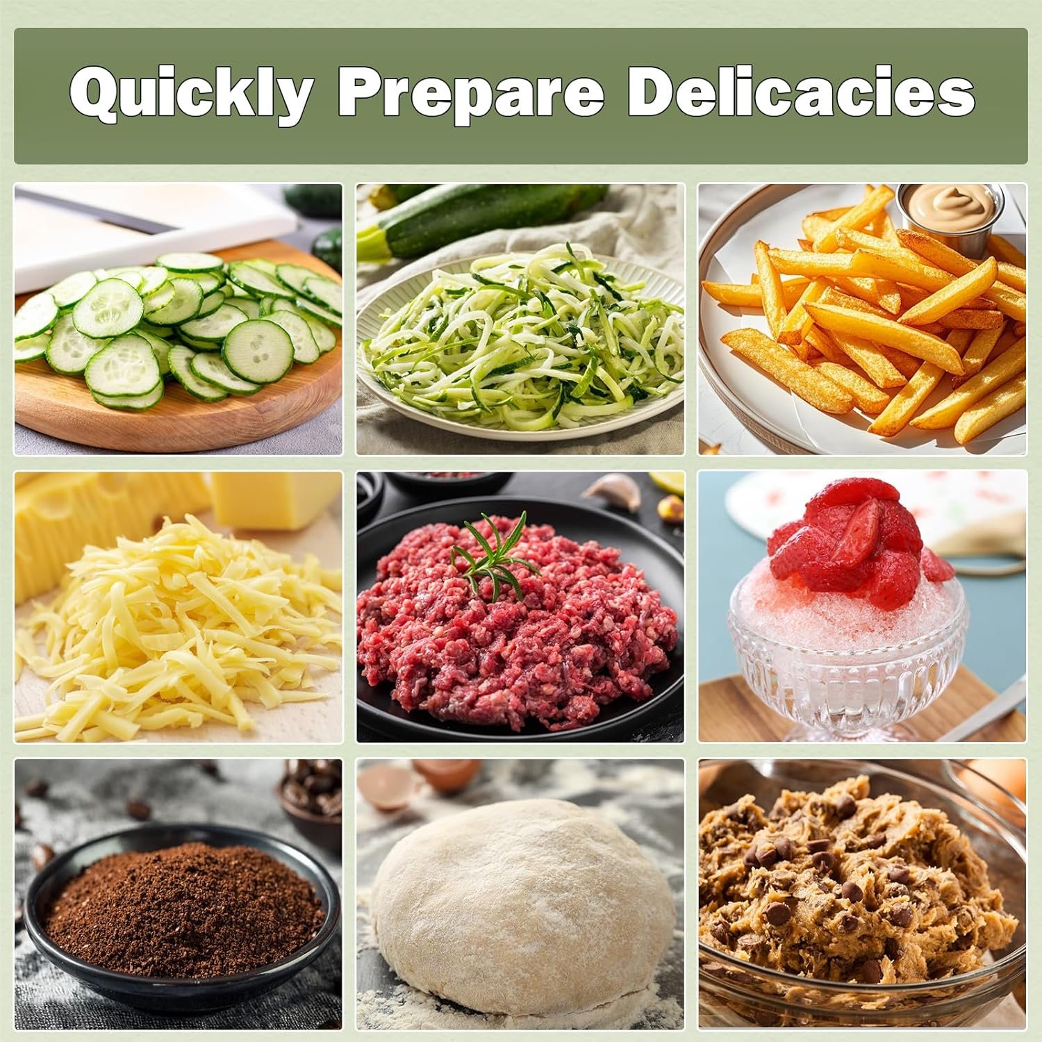 【Multi-Blade System + Bonus Spice Grinder】Includes 4 interchangeable blades: stainless steel chopping, slicing&shredding, French-fry cutter, and heavy-duty dough kneading blade. New! Bonus BPA-free spice grinder attachment pulverizes garlic, coffee beans, herbs, and nuts in seconds.swap attachments effortlessly for soups, sauces, desserts, or gourmet seasonings. Dishwasher-safe for quick cleanup.