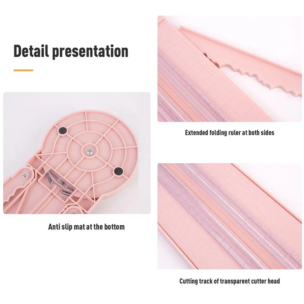Features: Anti-slip pads at the bottom, extended folding rulers on both sides, transparent blade cutting track