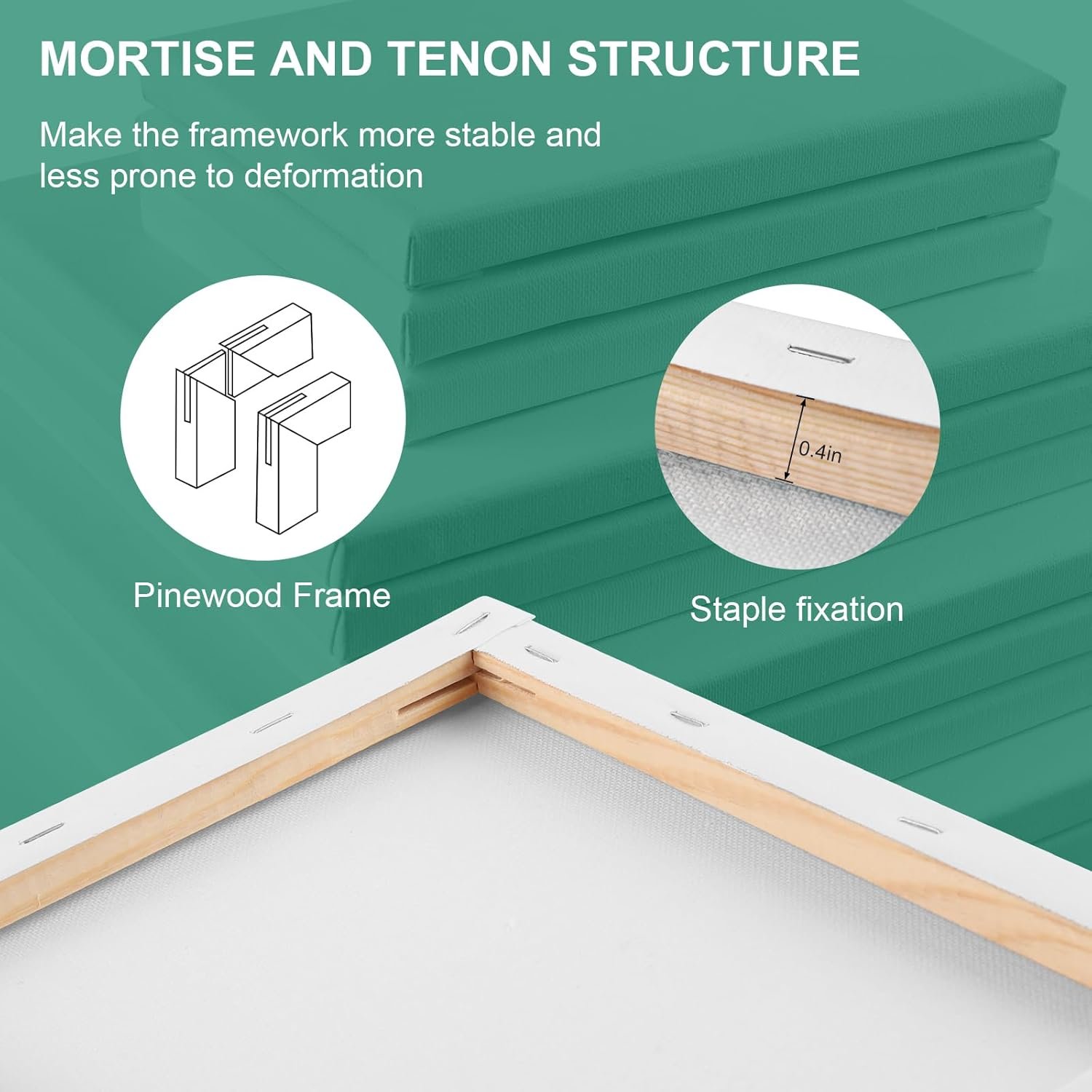 🎨Pine Frame: The stretched canvas for painting is firmly nailed to the pine frame. It is very sturdy, with the canvas tightly wrapped around the wooden strip and not easily deformed. Enhance your painting experience with our bulk canvas for painting, suitable for desktop painting.