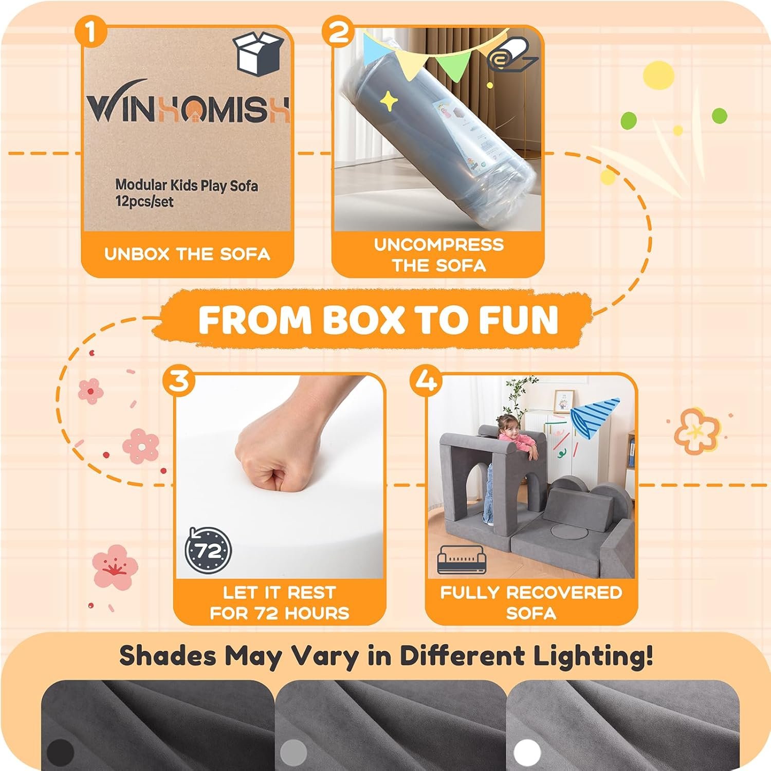 Premium Quality Modular Design – The Winhomish 12-piece kids modular play couch offers a luxurious and customizable solution for your child’s play and relaxation time. With its soft foam construction and removable, washable cover, this kids sofa is perfect for creating a safe and comfortable space in any room