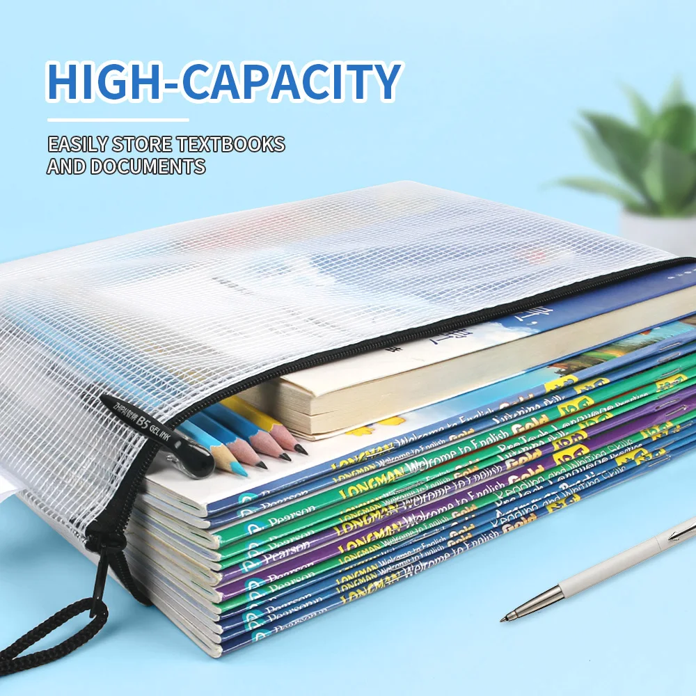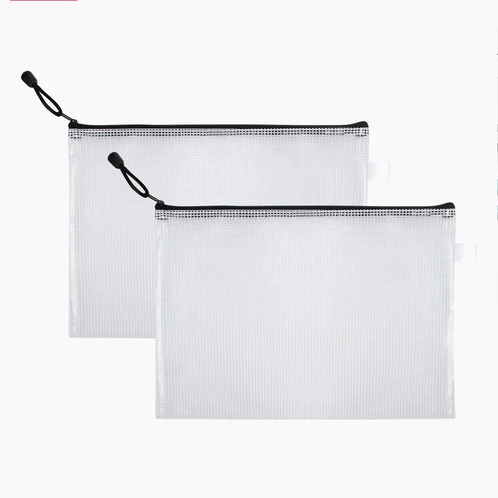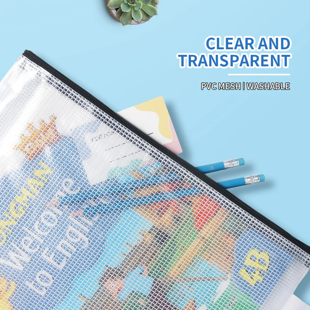12-piece plastic mesh zip file bag, waterproof and tear-resistant file folder, multi-size zip file bag for school office home tr