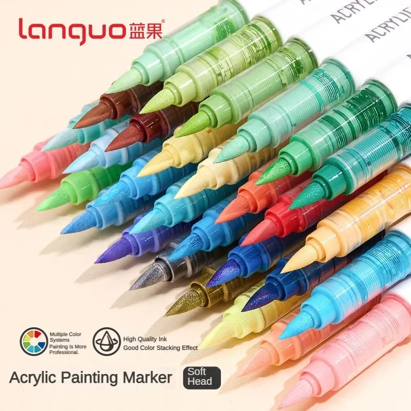 2 reviews for 126/9 Colors Direct Liquid Acrylic Paint Marker Pens Brush Marker for Rock Painting Stone Glass Wood DIY Art Supplies Stationery