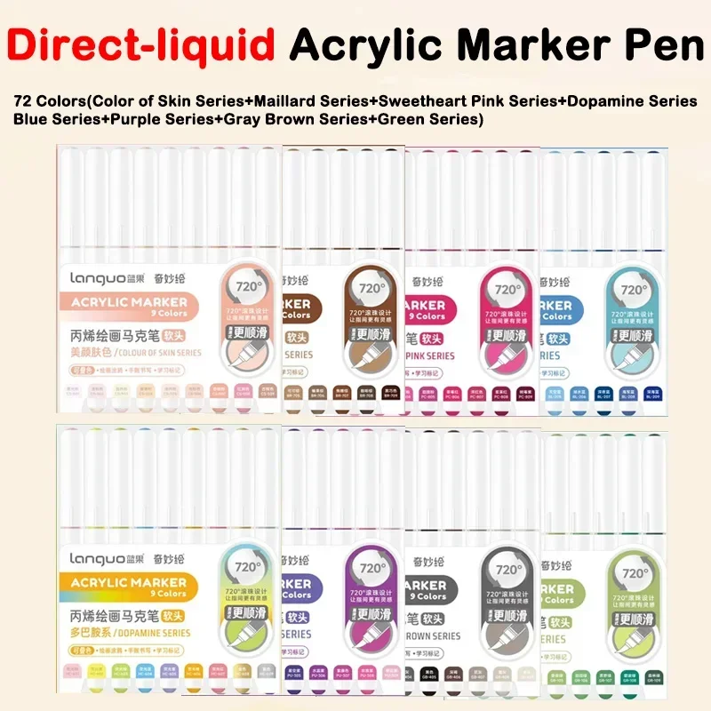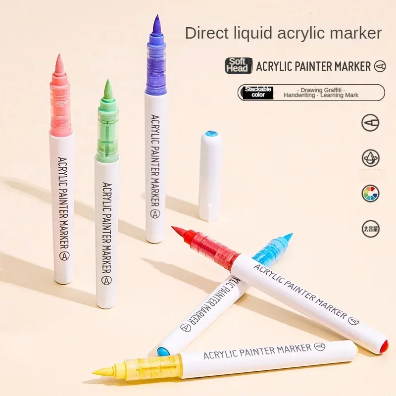 81/9 Colors Direct Liquid Acrylic Paint Marker Pens Brush Marker for Rock Painting Stone Glass Wood DIY Art Supplies Stationery