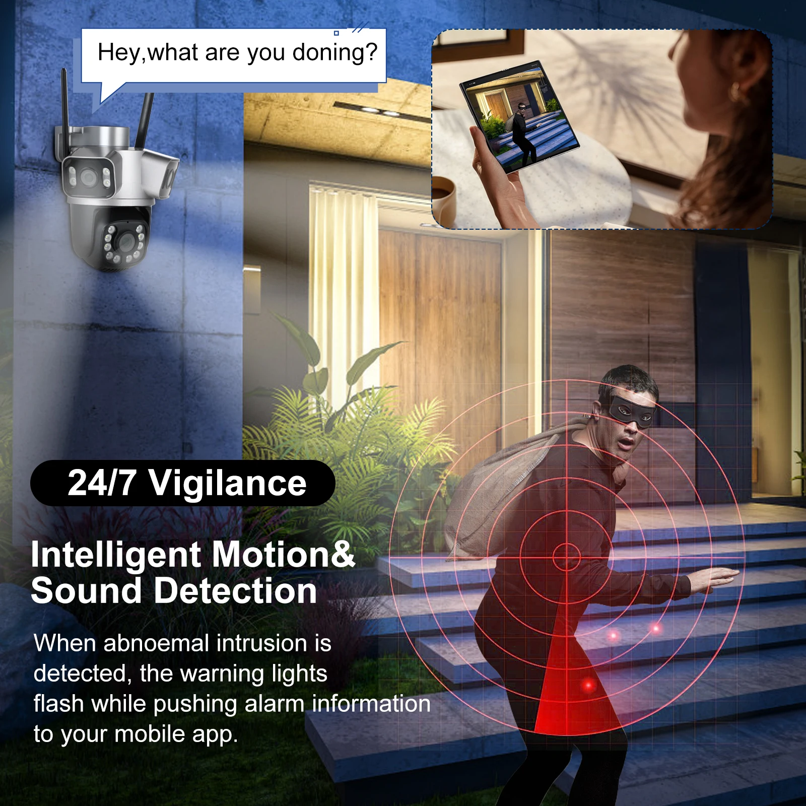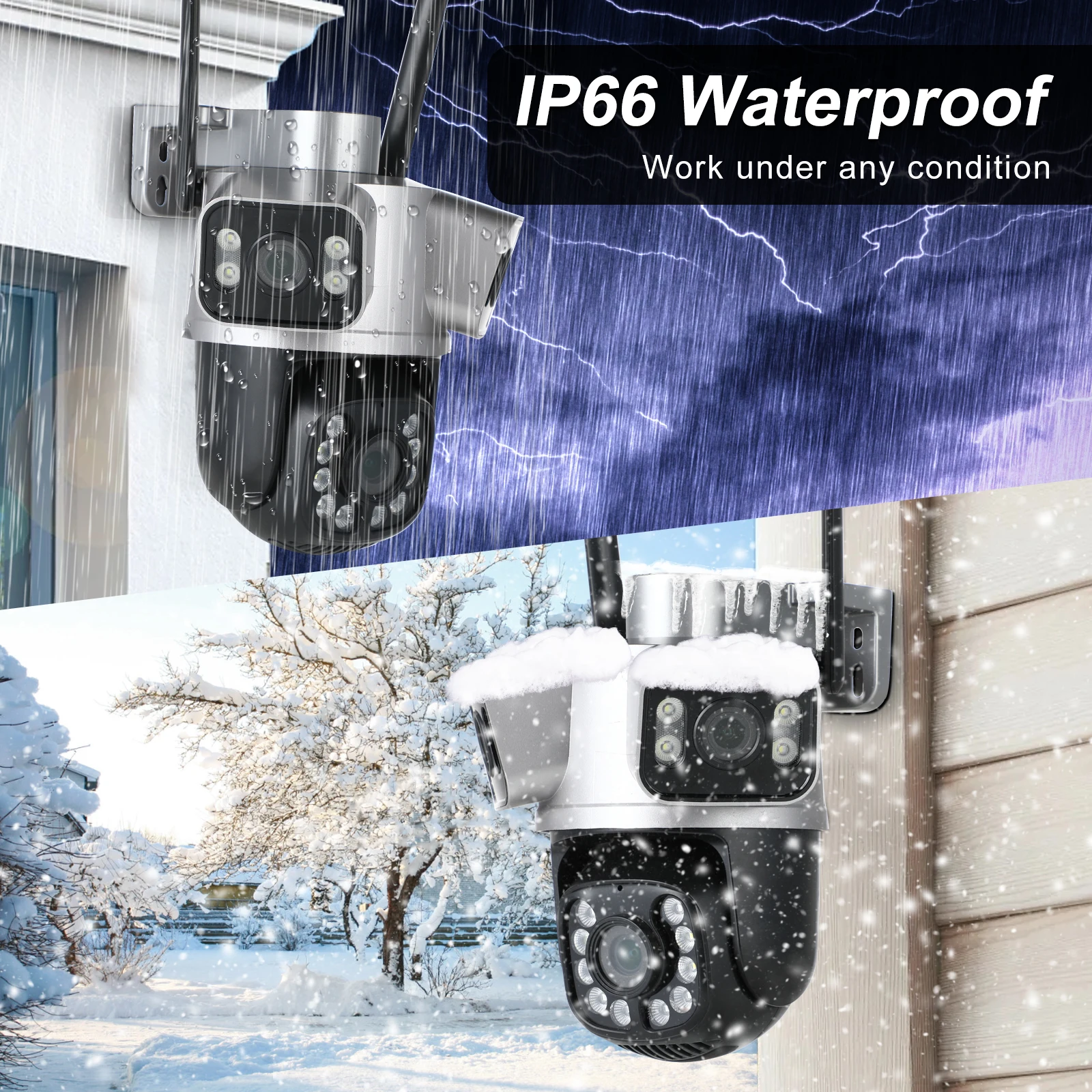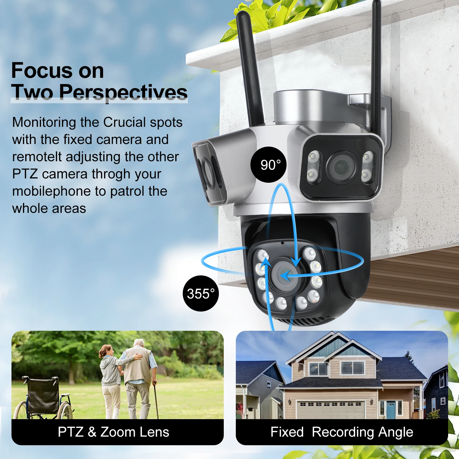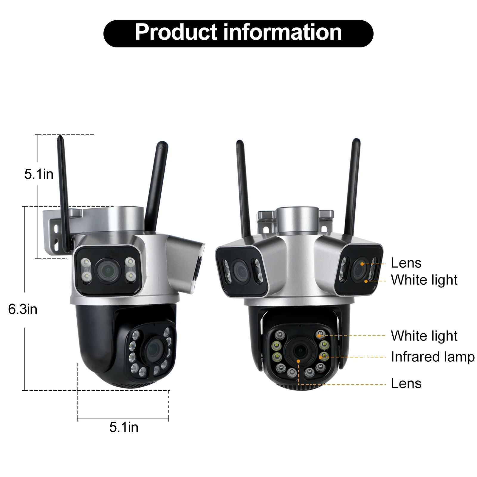 12MP 6K HD WiFi IP Camera Outdoor 3 Lens 3 Screen PTZ Camera Auto Tracking Home Security CCTV Surveillance 8MP Cam