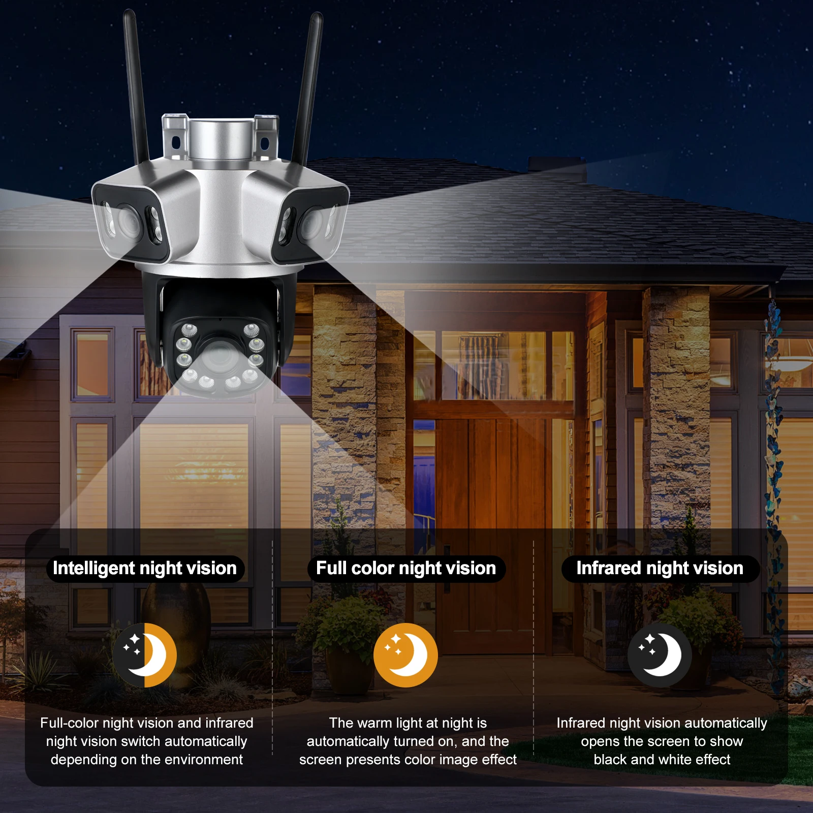 – Dual light source design, built-in infrared light + white light, night vision infrared and night vision full color can be set;