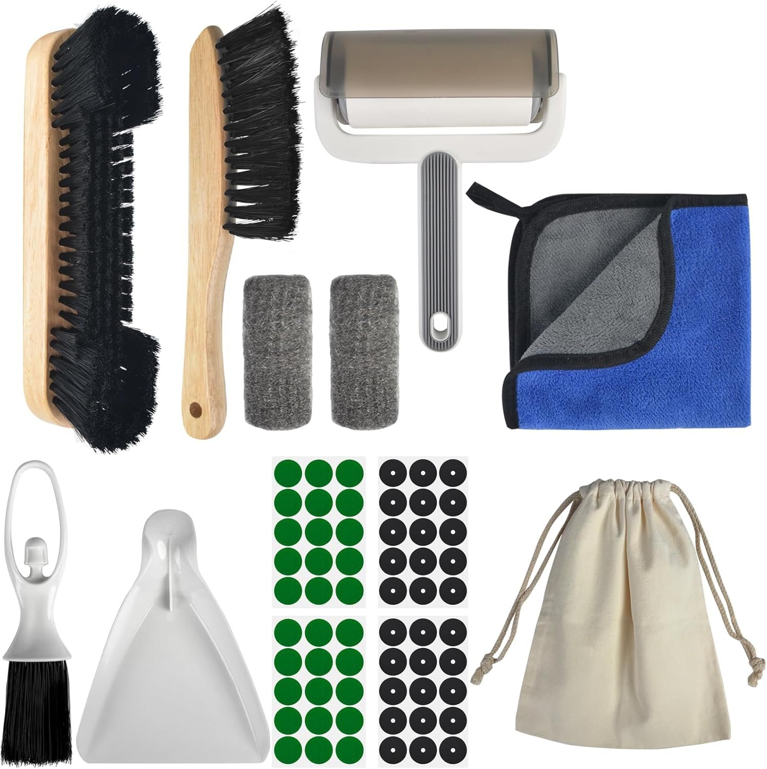 You Will Get: The billiards pool table cleaning kit includes 2pcs pool table brushes, 2pcs ferrule polish cloths, 1pc cleaning cloths,1pc sticky lint roller, 1pc dustpan and broom, 30pcs pool dots, 30pcs repair patches and 1pc storage bag. Enough for daily use and replacement need