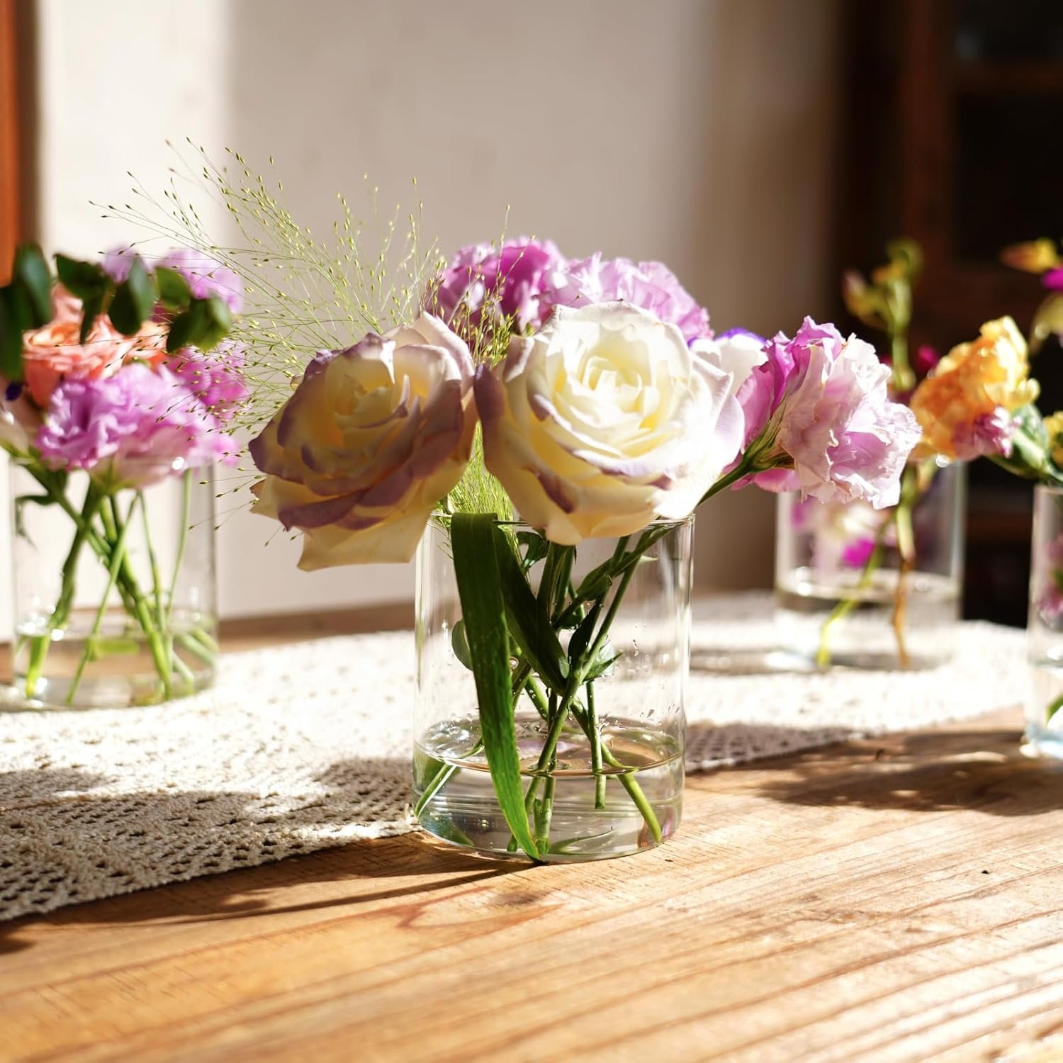 【Applicable Occasions】-This small cylindrical vase has a compact size and is perfect as an exquisite dining table decoration, elegant glass candle holder, and charming wedding decoration. Make it an ideal choice for various occasions, including restaurants, gardens, weddings, and parties.