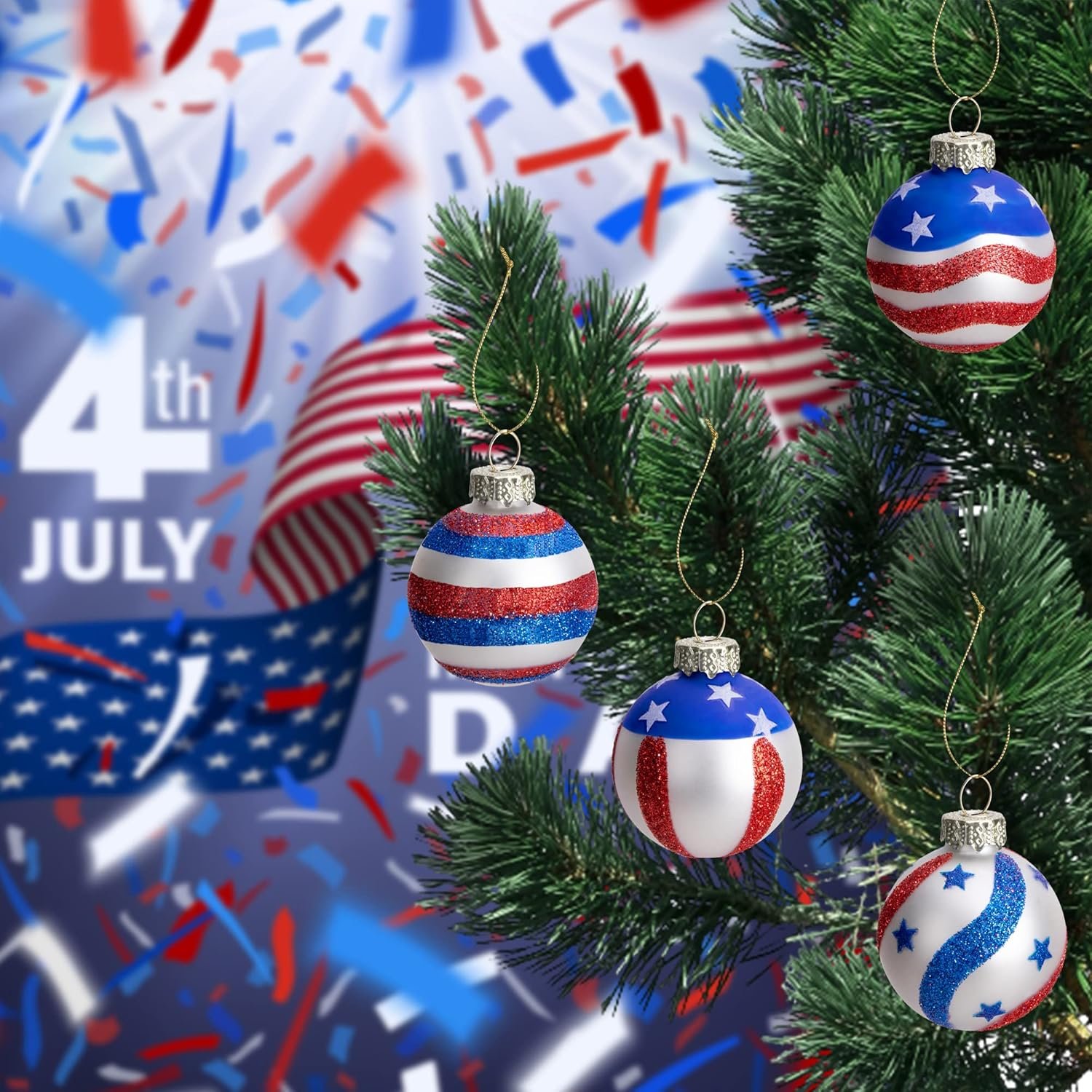 4Th of July Ball Ornaments Set – 12 Pcs American Flag hanging balls, Baubles are equipped with silver ornament caps, hooks and strings for easy hanging.