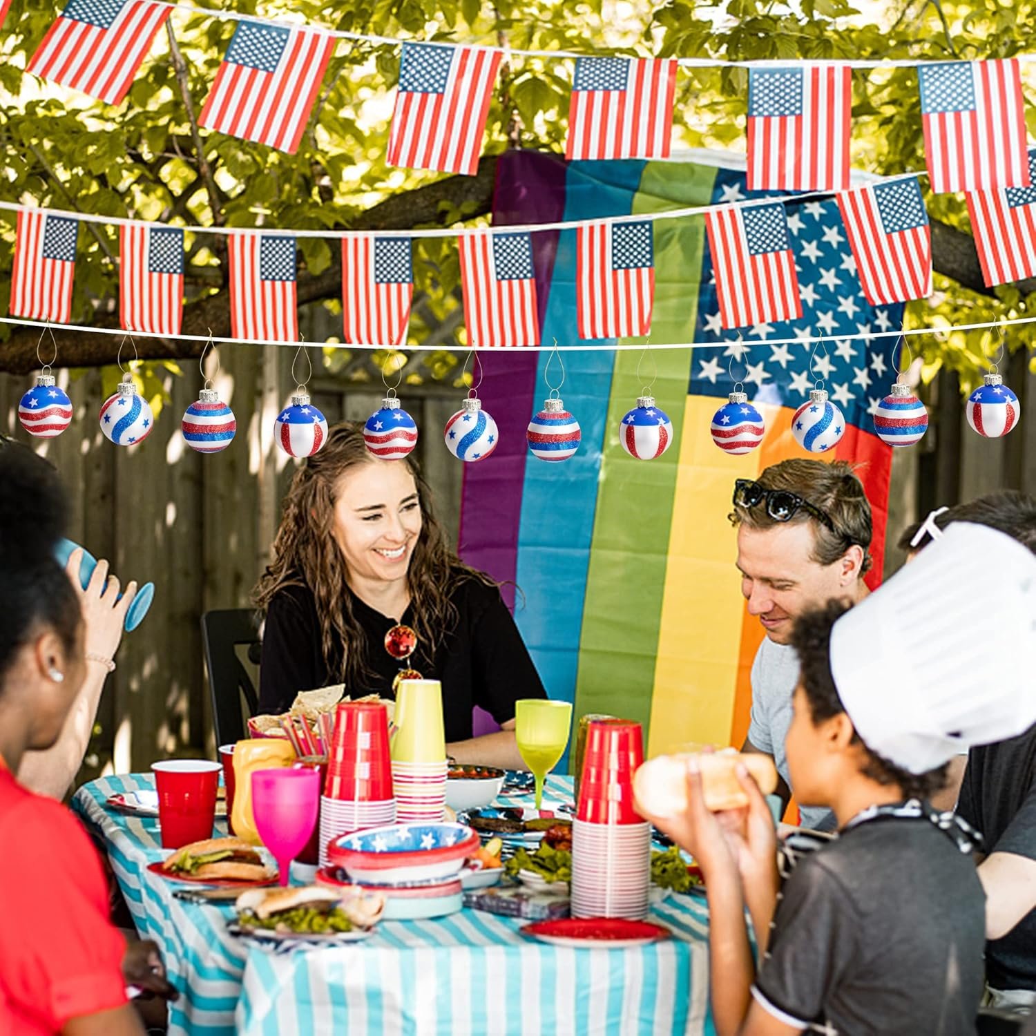 The theme of our Memorial Day decorations is patriotism, so we use the classic colors, namely, red, blue, white, and related words to decorate your garden and family by hanging them by ourselves, so that your relatives and friend can better remember the heroes who brought us a happy life.