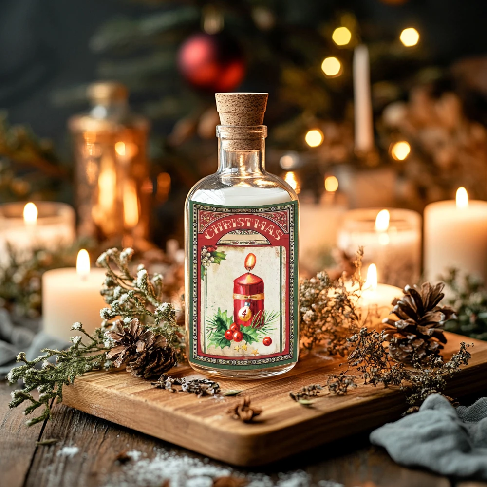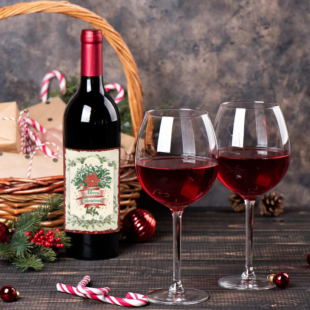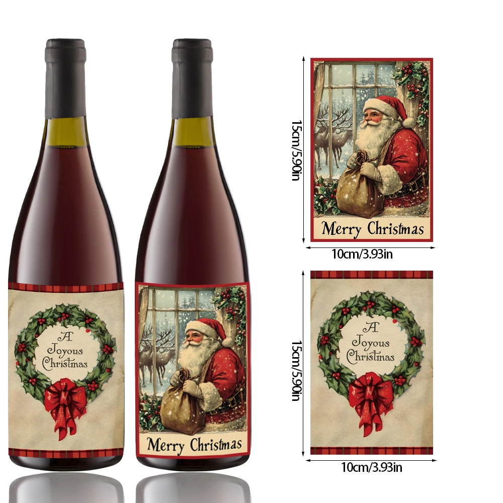 12pcs Retro Merry Christmas Wine Bottle Label Wraps Stickers Xmas Party Decoration New Year Navidad Gift DIY Sealing Stickers
