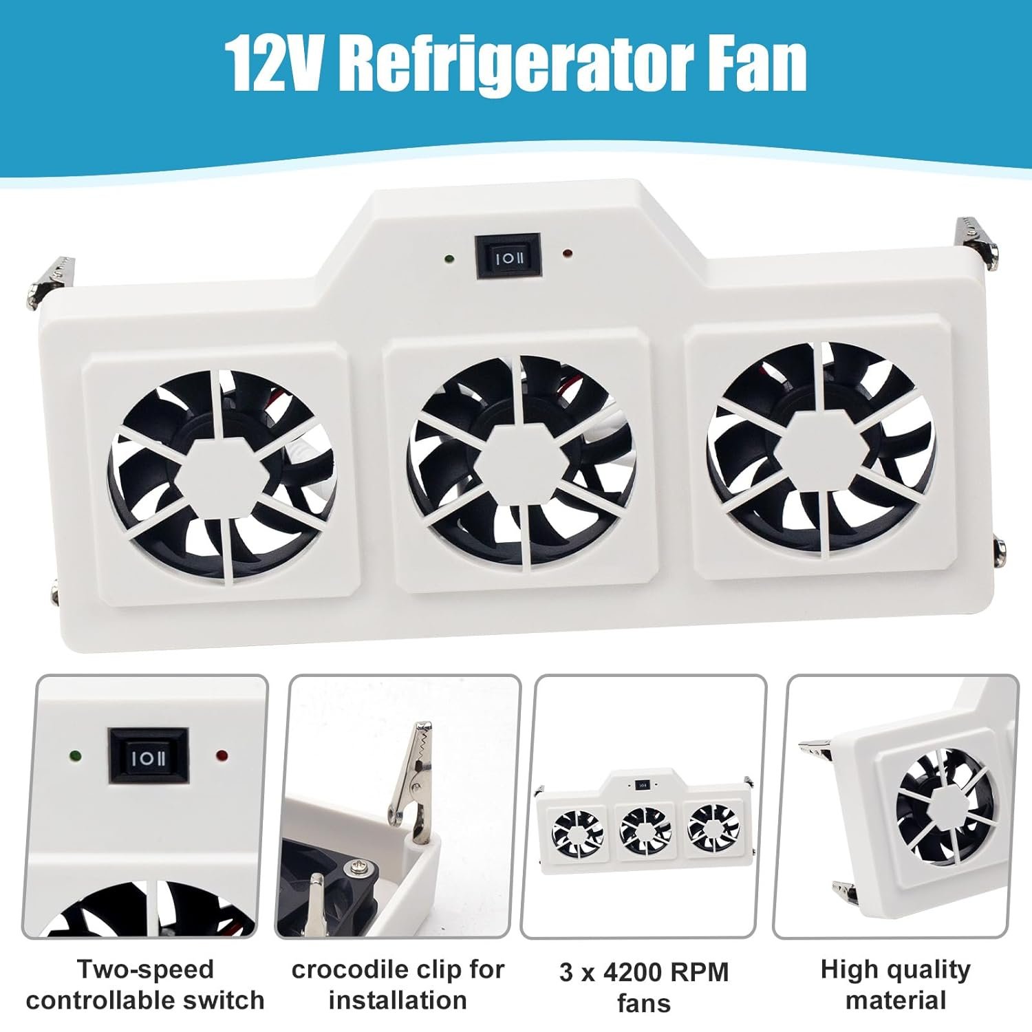 Quick Installation: Four alligator clips enable tool-free attachment directly to evaporator fins, while included wire nuts simplify 12V power connection